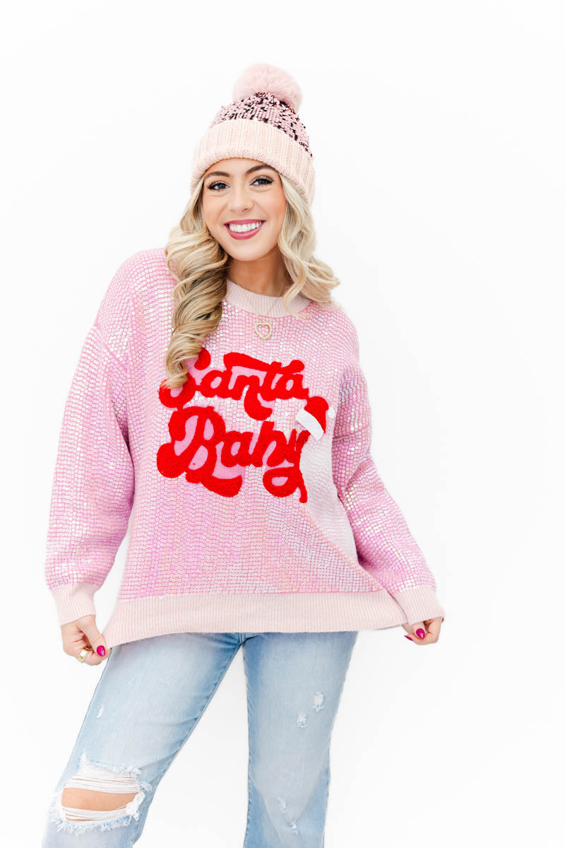 Bring on the holiday glam with The Santa Baby Sparkle Sweater!