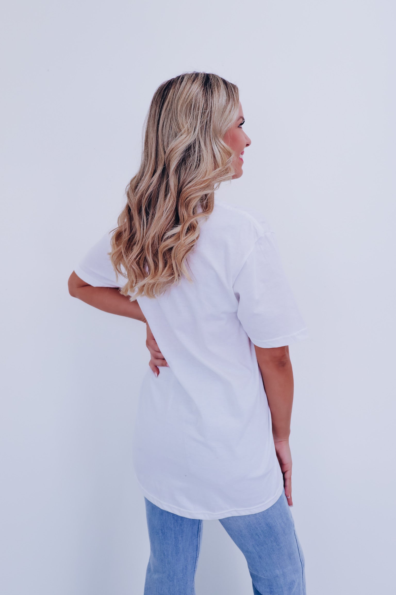 - Super cute and trendy this cutie is a unique tee that will style perfectly with your fav shacket, denim, and sneakers for a trendy fit while holiday shopping.