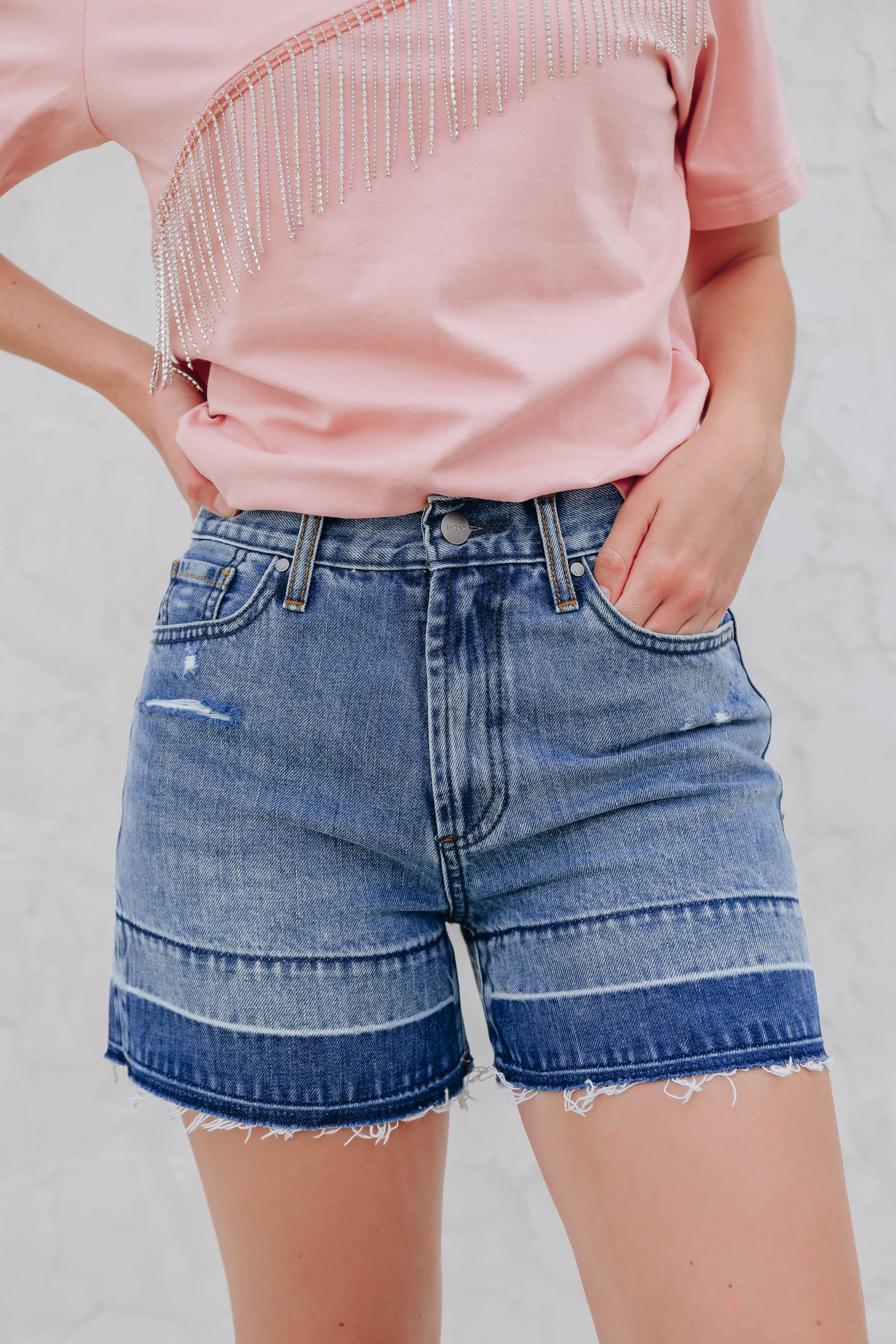 - We are in love with these shorts and the darker wash detail at the bottom of the leg!