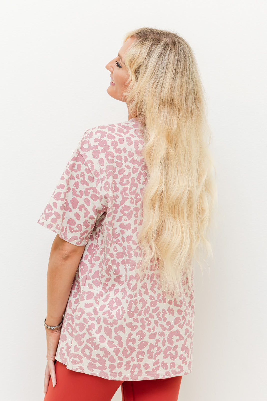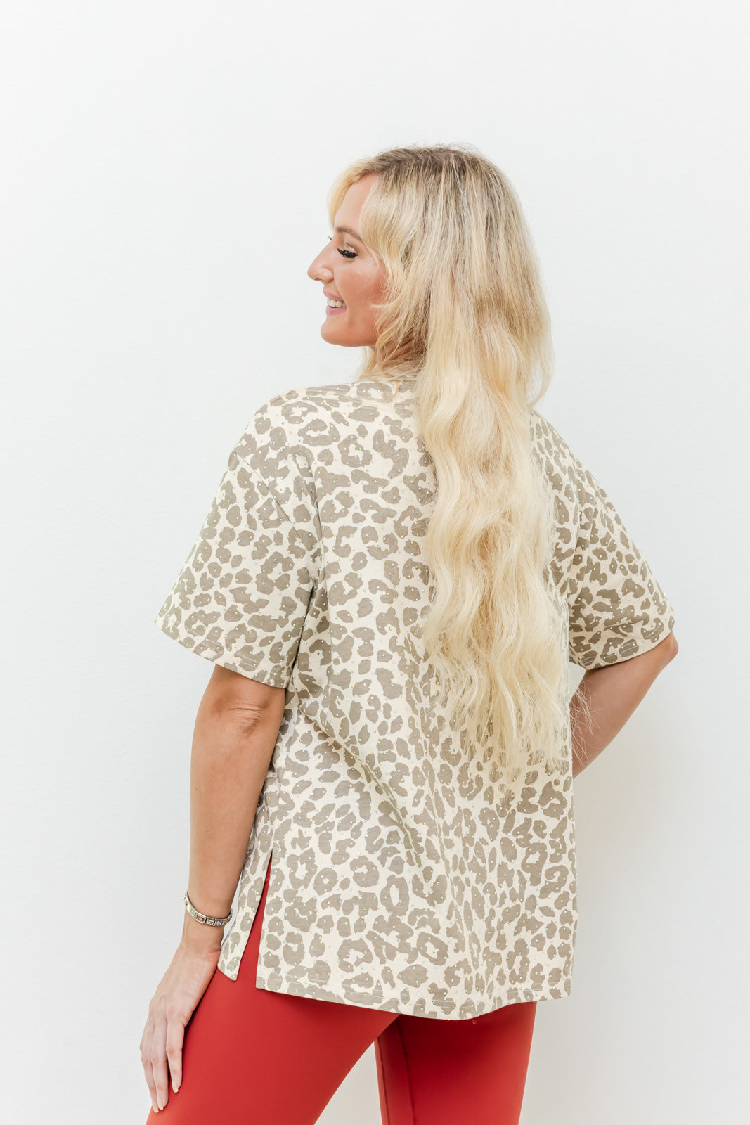 Add a little sparkle to your everyday look with our Glimmer Roar Top. This oversized tee takes a classic leopard print and elevates it with a subtle shimmer finish that catches the light just right. Designed with a relaxed, drop-shoulder fit, it’s easy to wear and perfect for layering or styling solo.