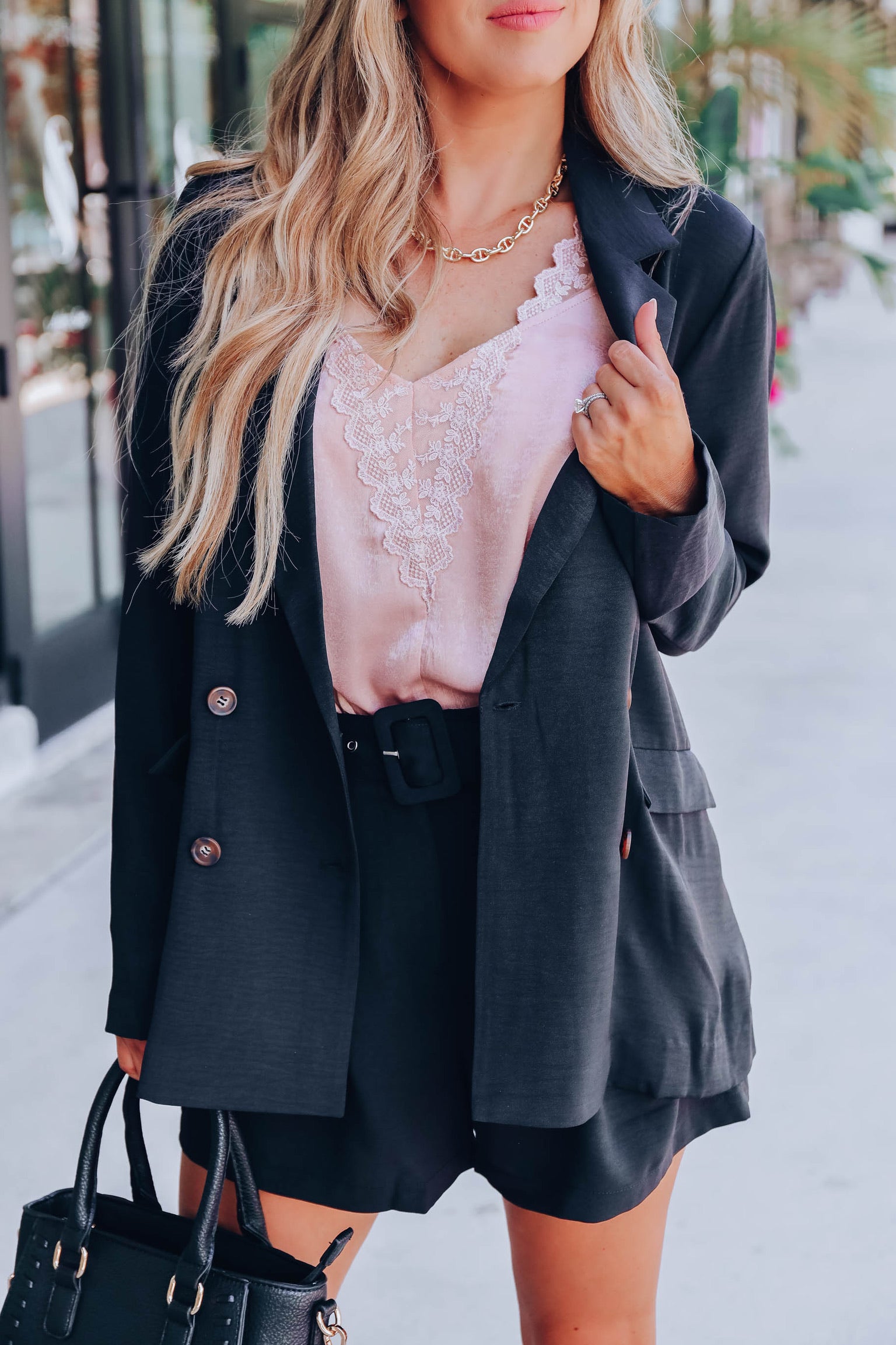 - This lightweight double-breasted jacket is such a versatile piece! Wear it for a night out, in the office, or a casual day.