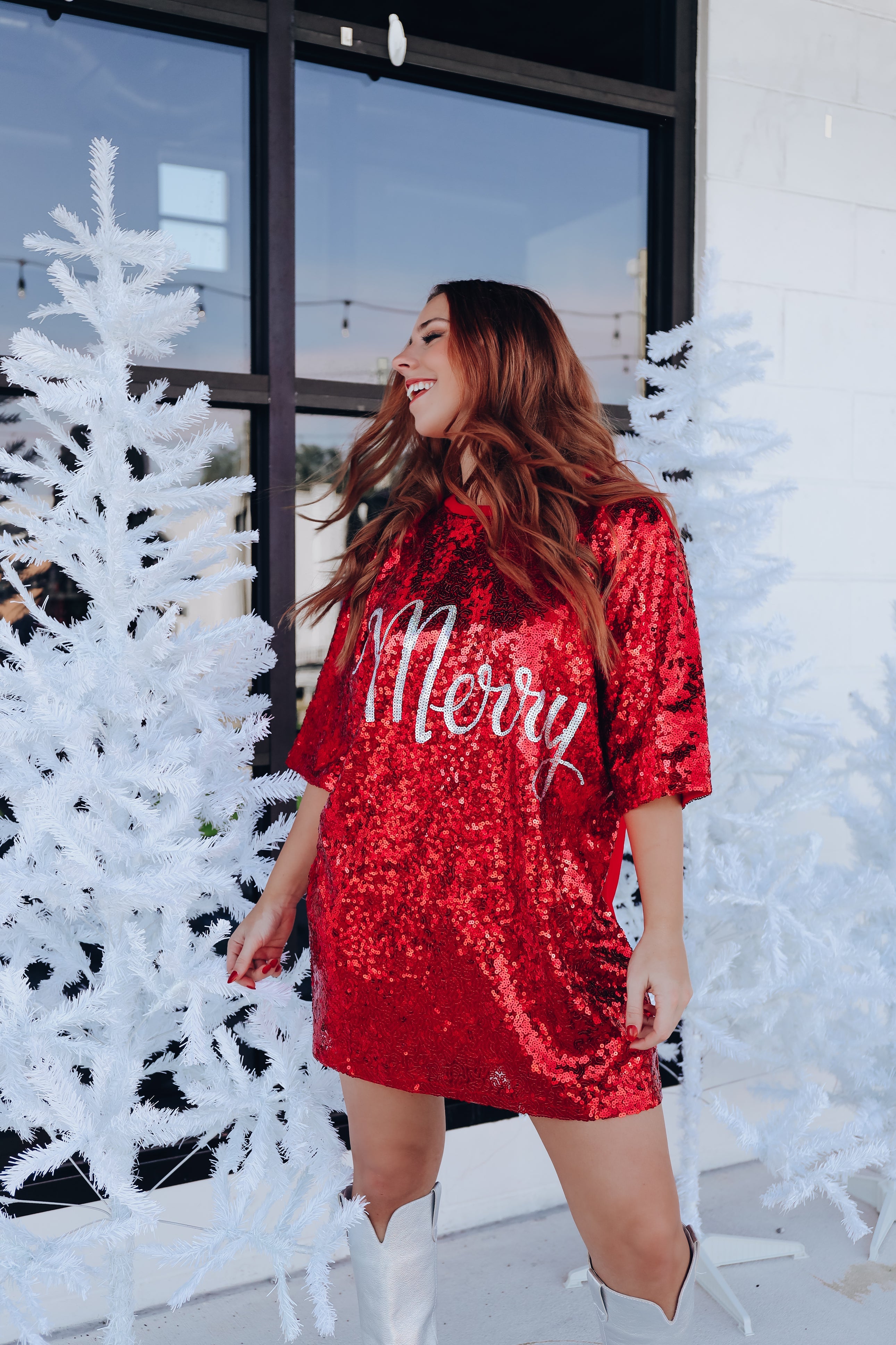 - Christmas season is upon us, and we are delivering the cutest outfits! Wow everyone at your holiday party, or on the cover of your annual Christmas card with this sparkly t-shirt/dress. Pair with leggings and sneakers for an over the top day fit, or choose heels to give it a true girly fashion statement for an evening affair.