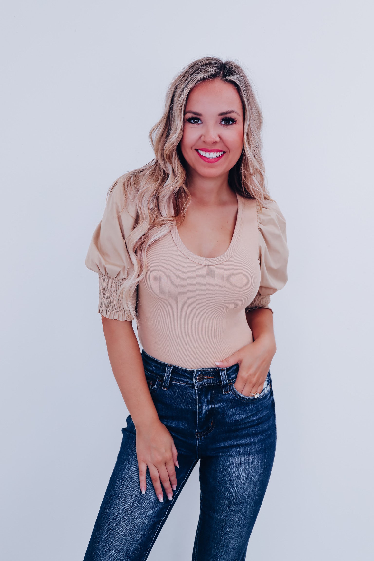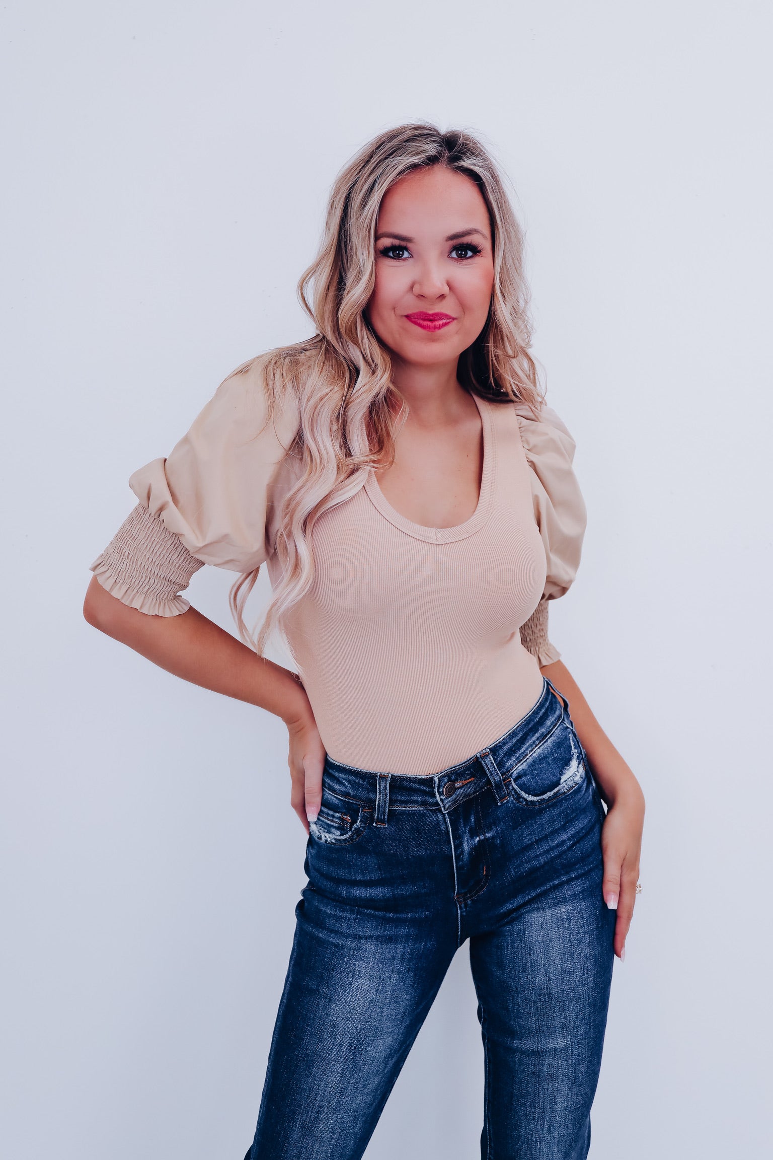 Pizzazz Puff Sleeve Bodysuit - Taupe