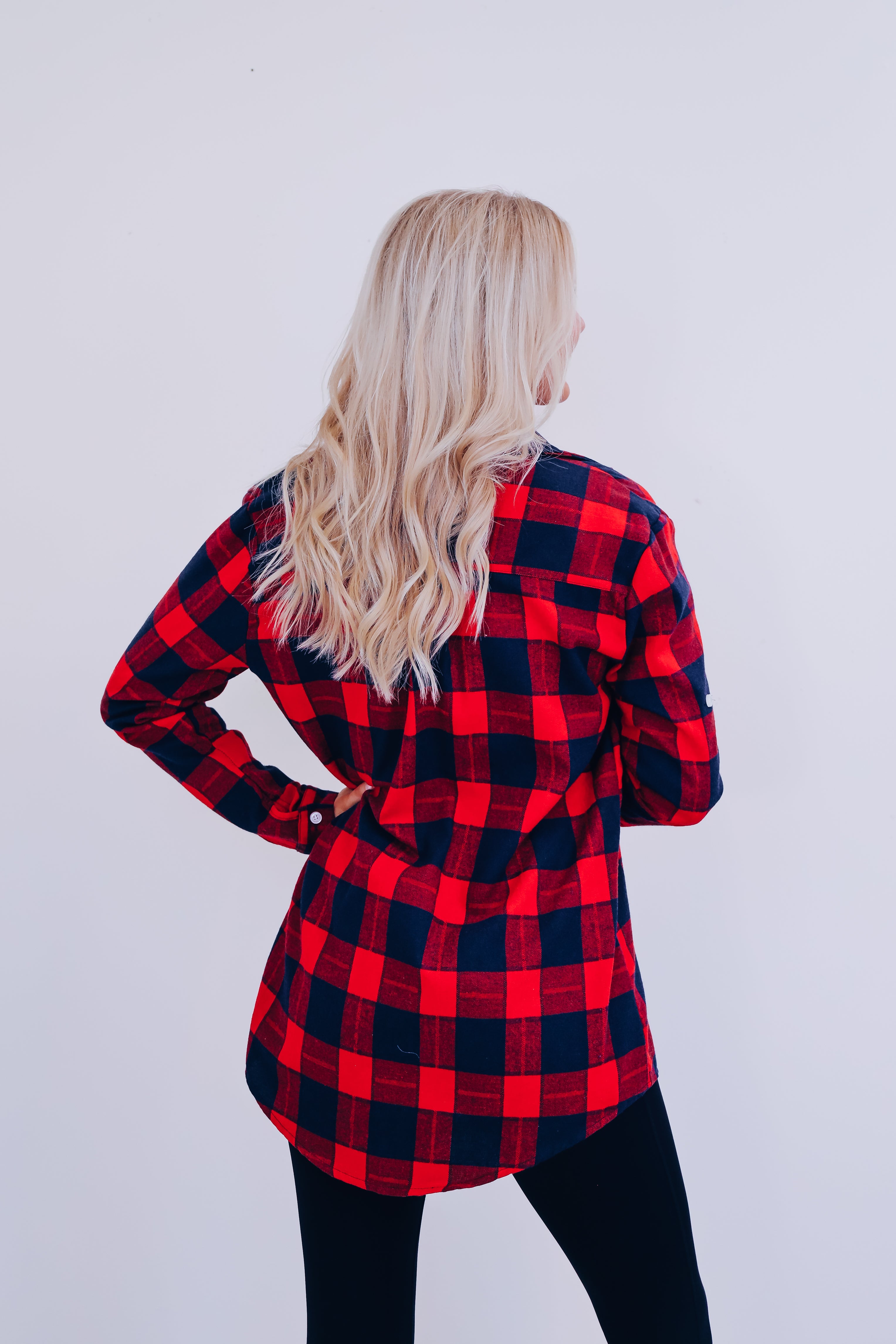 - Features a super soft plaid flannel fabric, a collared button down front, a drop shoulder, full length sleeve with button cuff and ability to be rolled up to 3/4 inch sleeve, a long length rounded hem, plus a front patch pocket.
