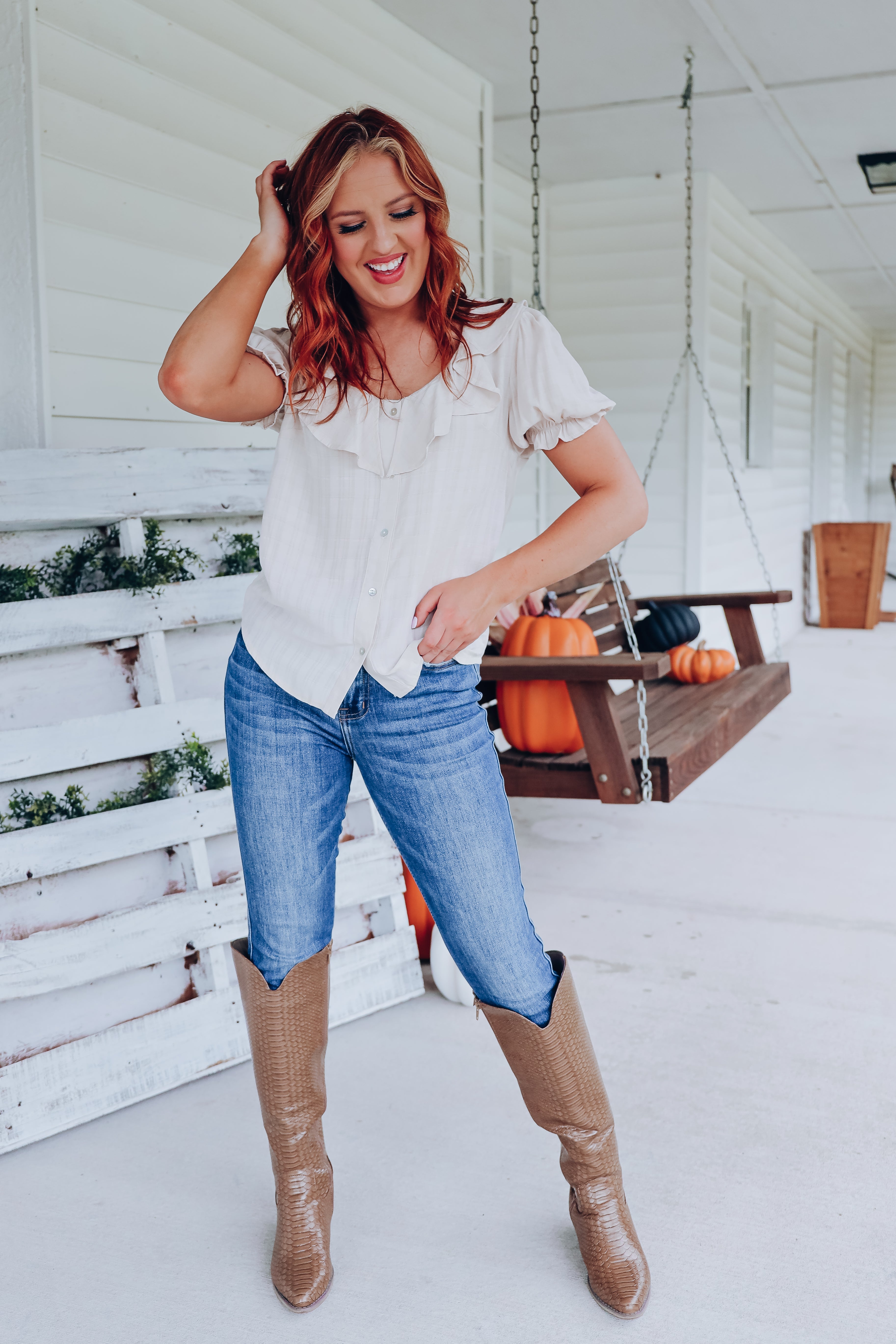 - A versatile everyday wear blouse has arrived with feminine flair and comfort. Pair with slacks/skirt for work, or denim jeans and heels for date night.