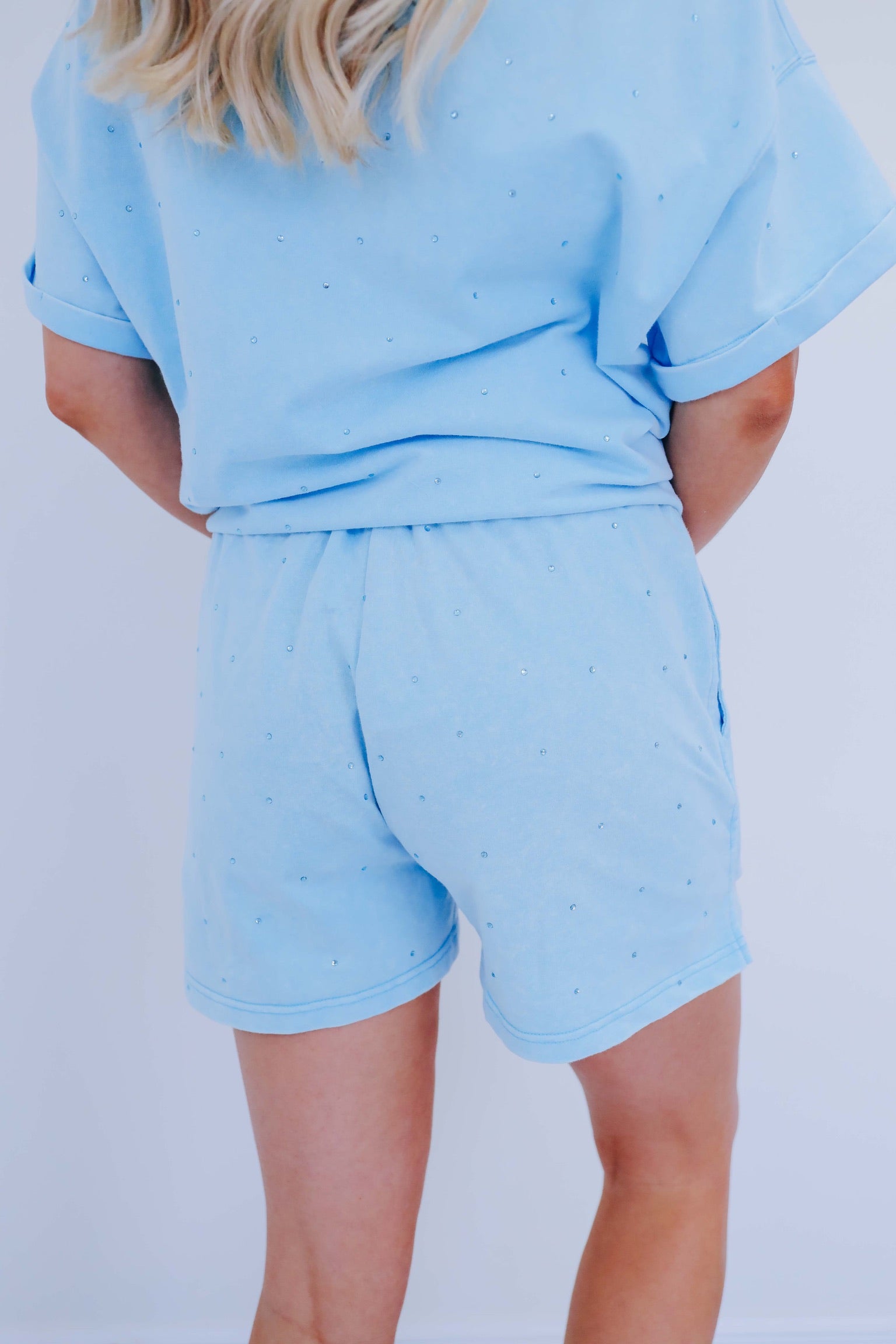 Super cozy these pocketed shorts going to be a fav for their light weight cotton fabric and trendy details. Style these comfy shorts with our matching Sparkle On V-Neck Top for a super trendy OOTD!