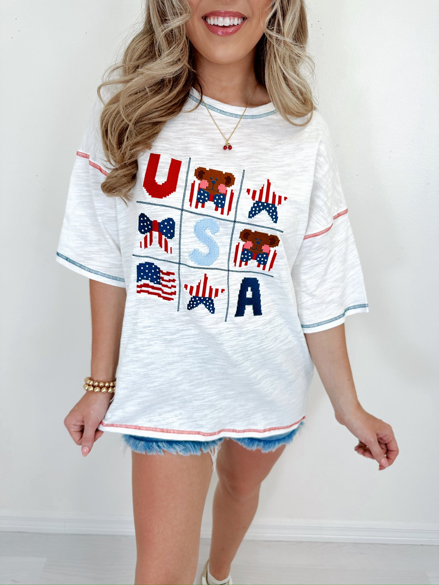 Stars, Stripes & Snuggles Embroidered Tee - White