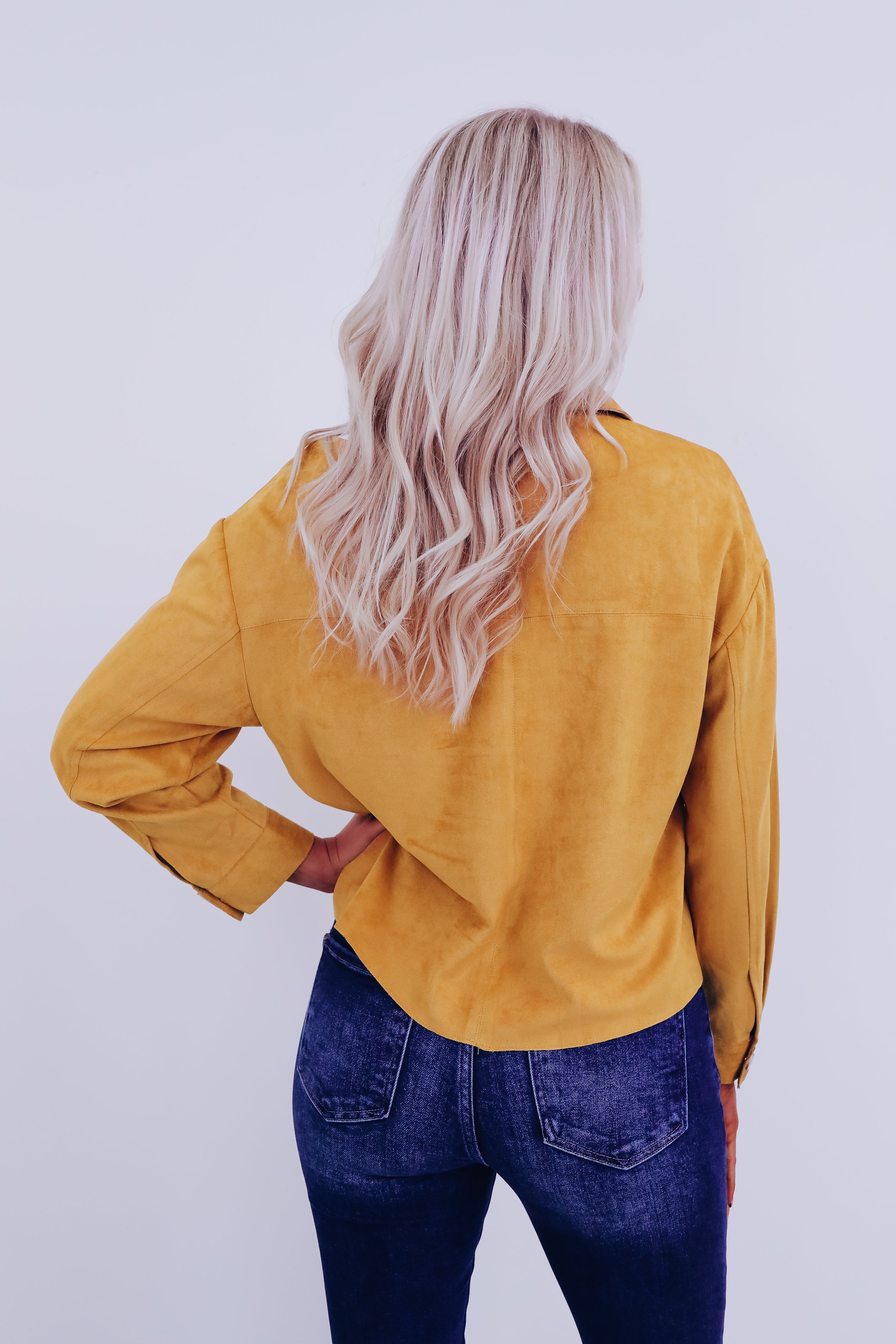 - Features a super soft faux suede fabric, collared snapped front, a drop shoulder long sleeve with snap cuffs, flap patch pockets on the chext, and a raw edge straight hem.