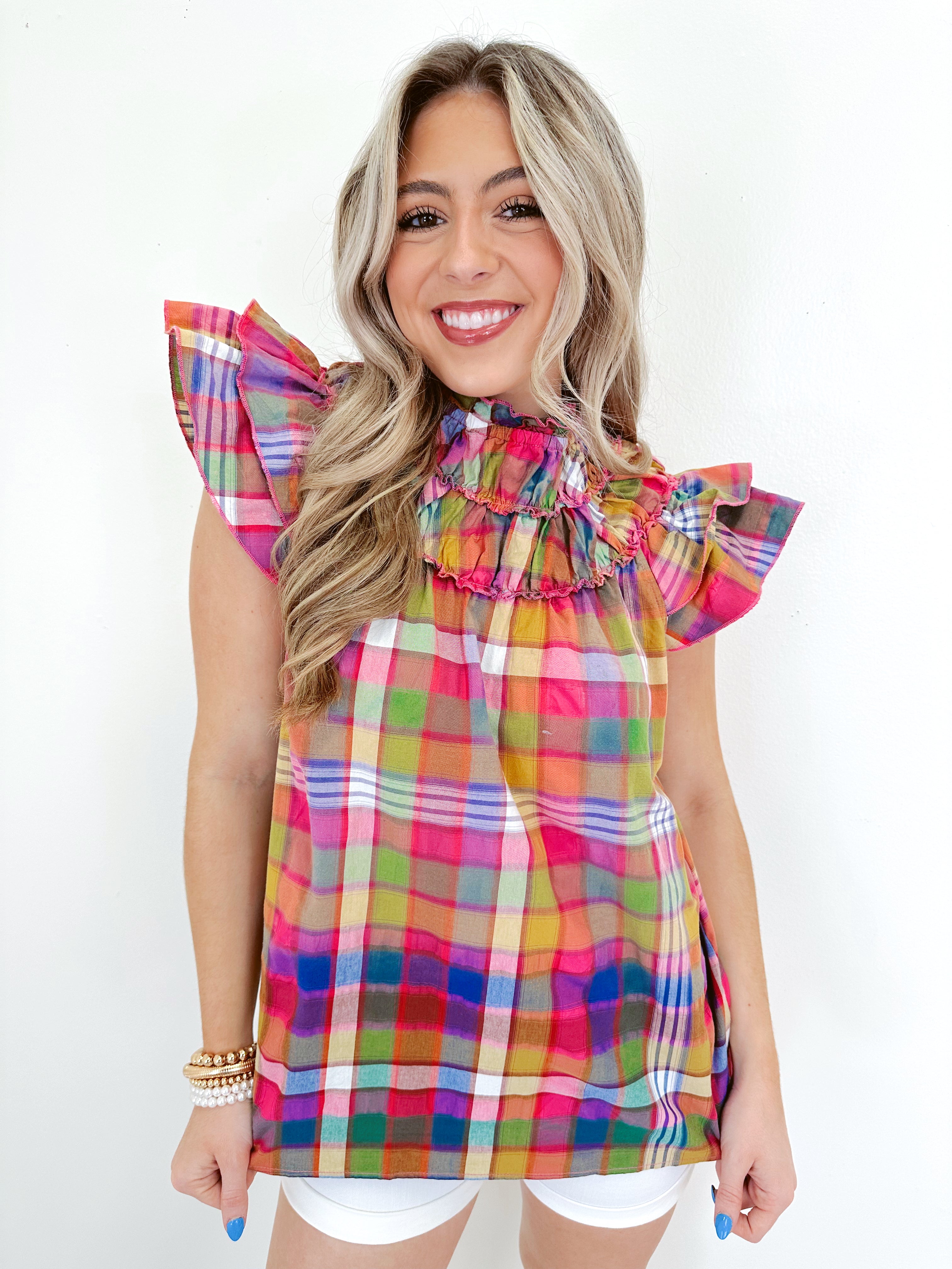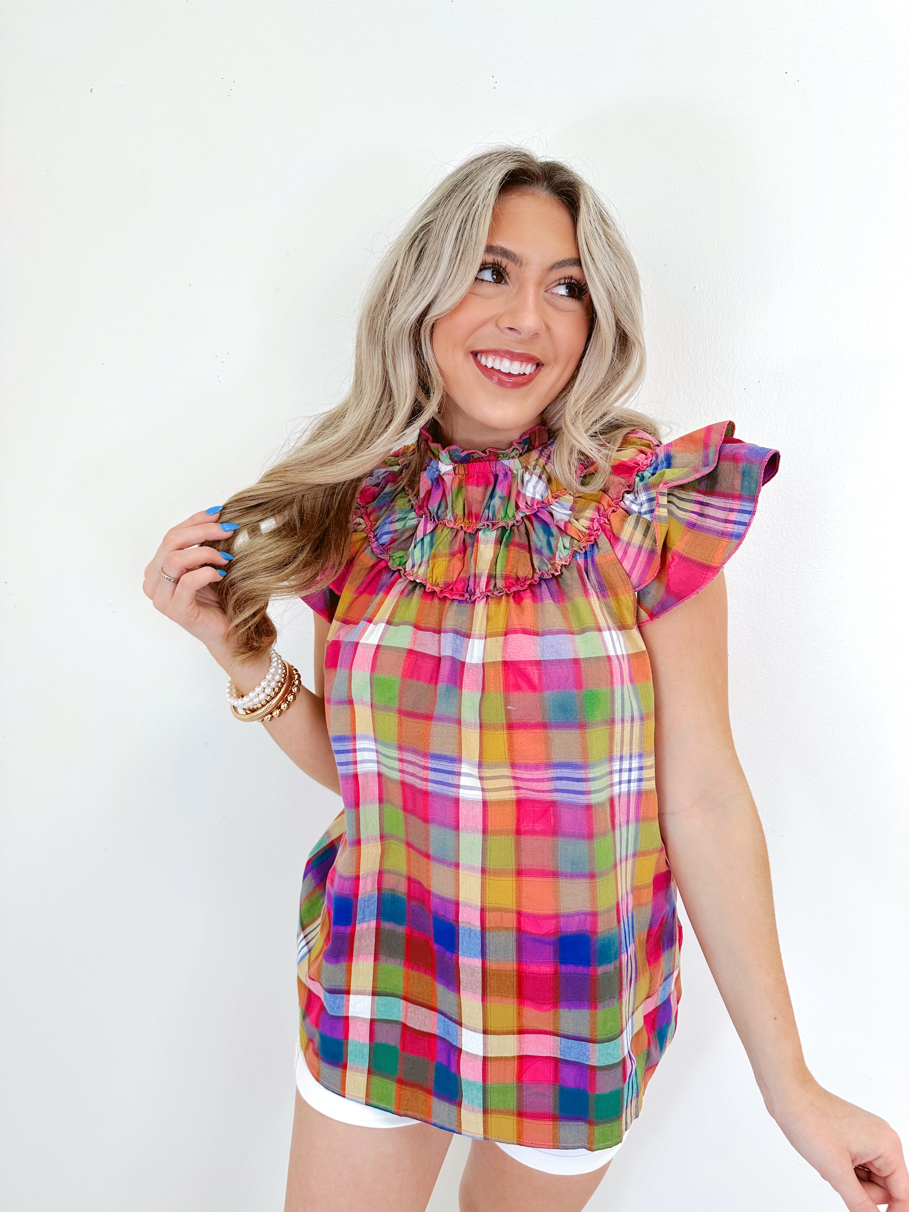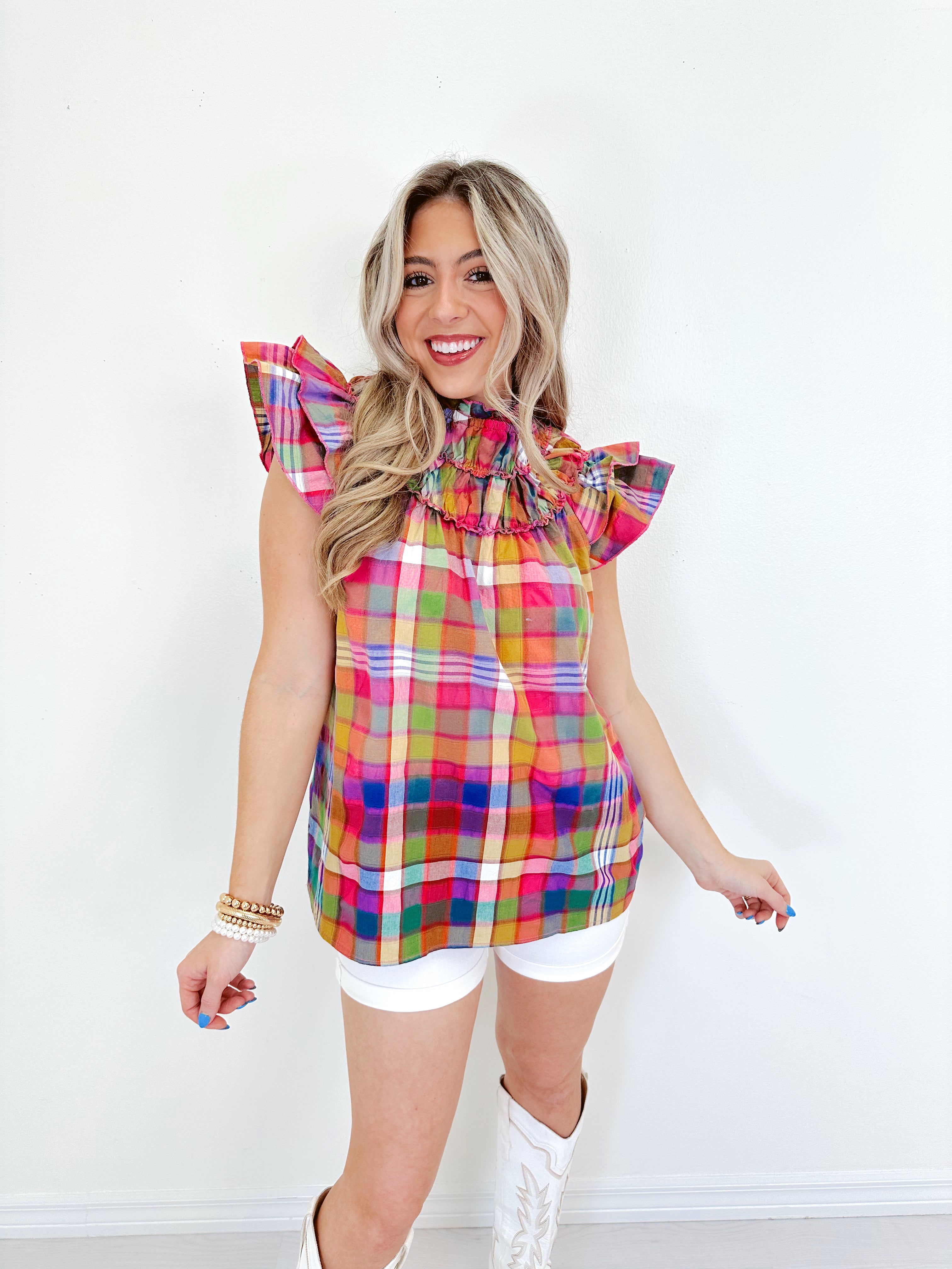 - Our Summer Smocked Vintage Plaid Top boasts a colorful dip dyed plaid fabric with all the frilly details. This cutie is perfect for a summer outing paired with your fav denim and sandals, or style with a denim skirt and booties for a fun concert fit.