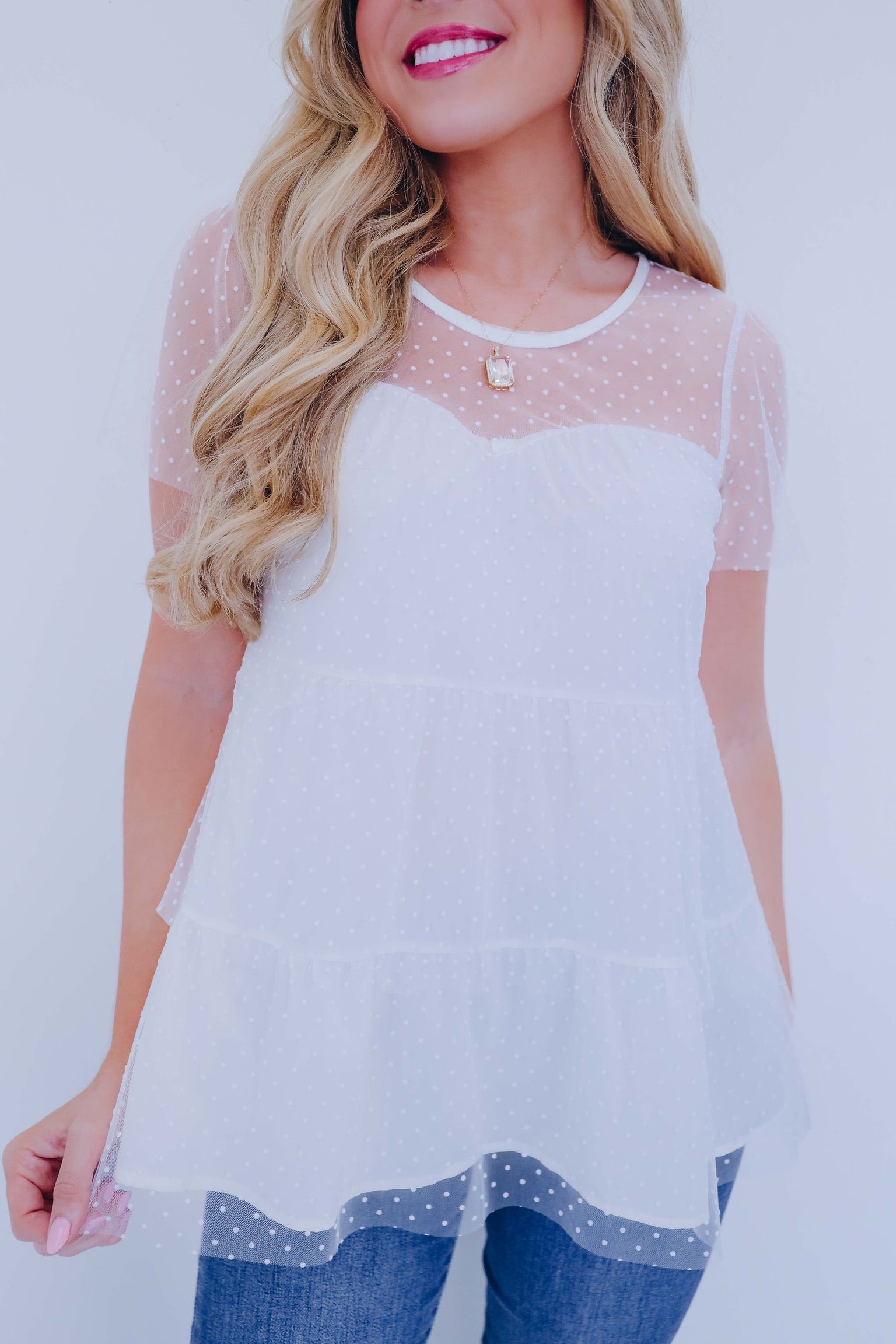 Tatiana Tiered Mesh Top - Ivory
