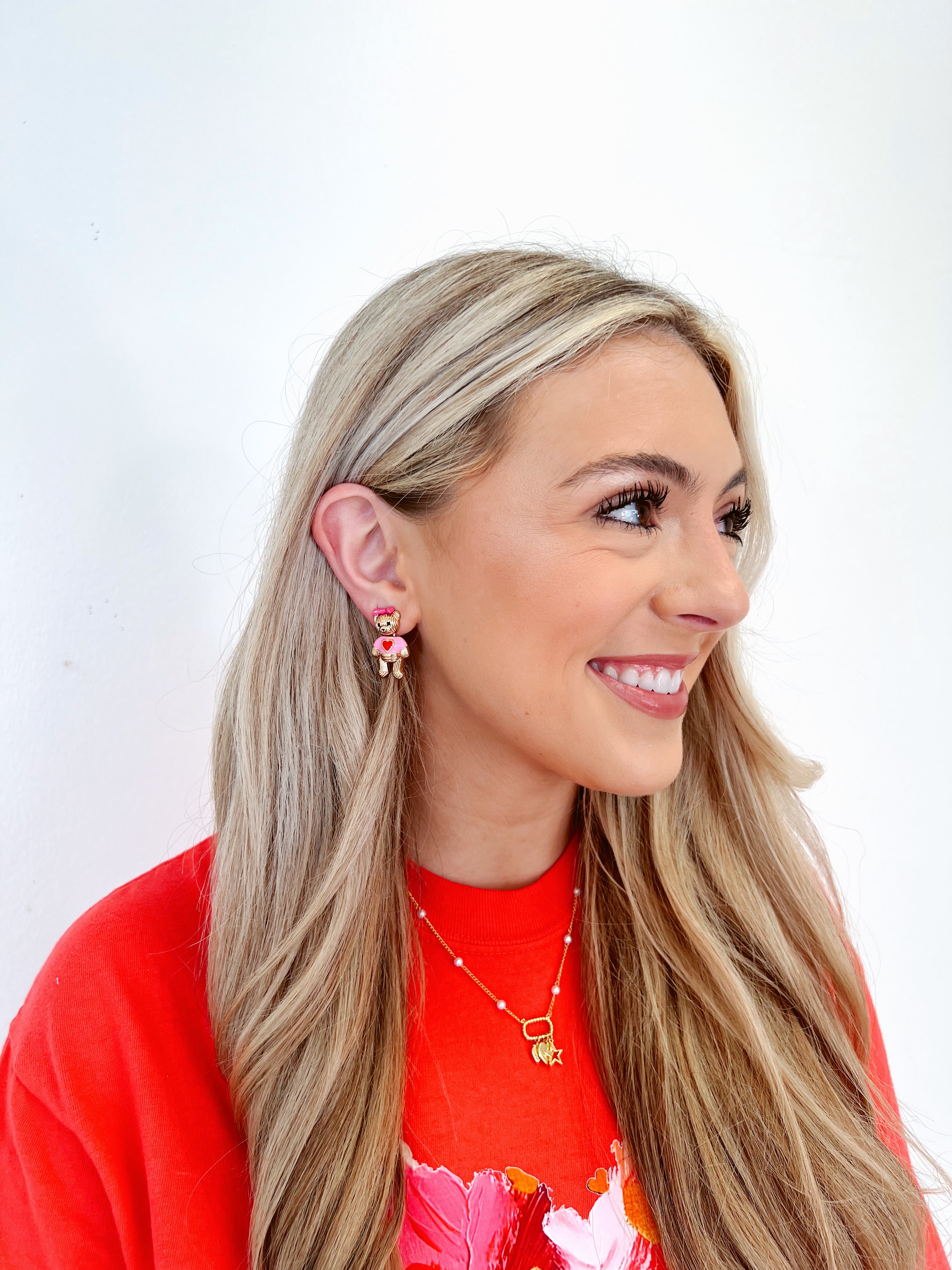 - Add a touch of love to your OOTD with our Beary Cute Bow Enamel Earrings. These earrings are a must-have accessory for Valentine's Day.