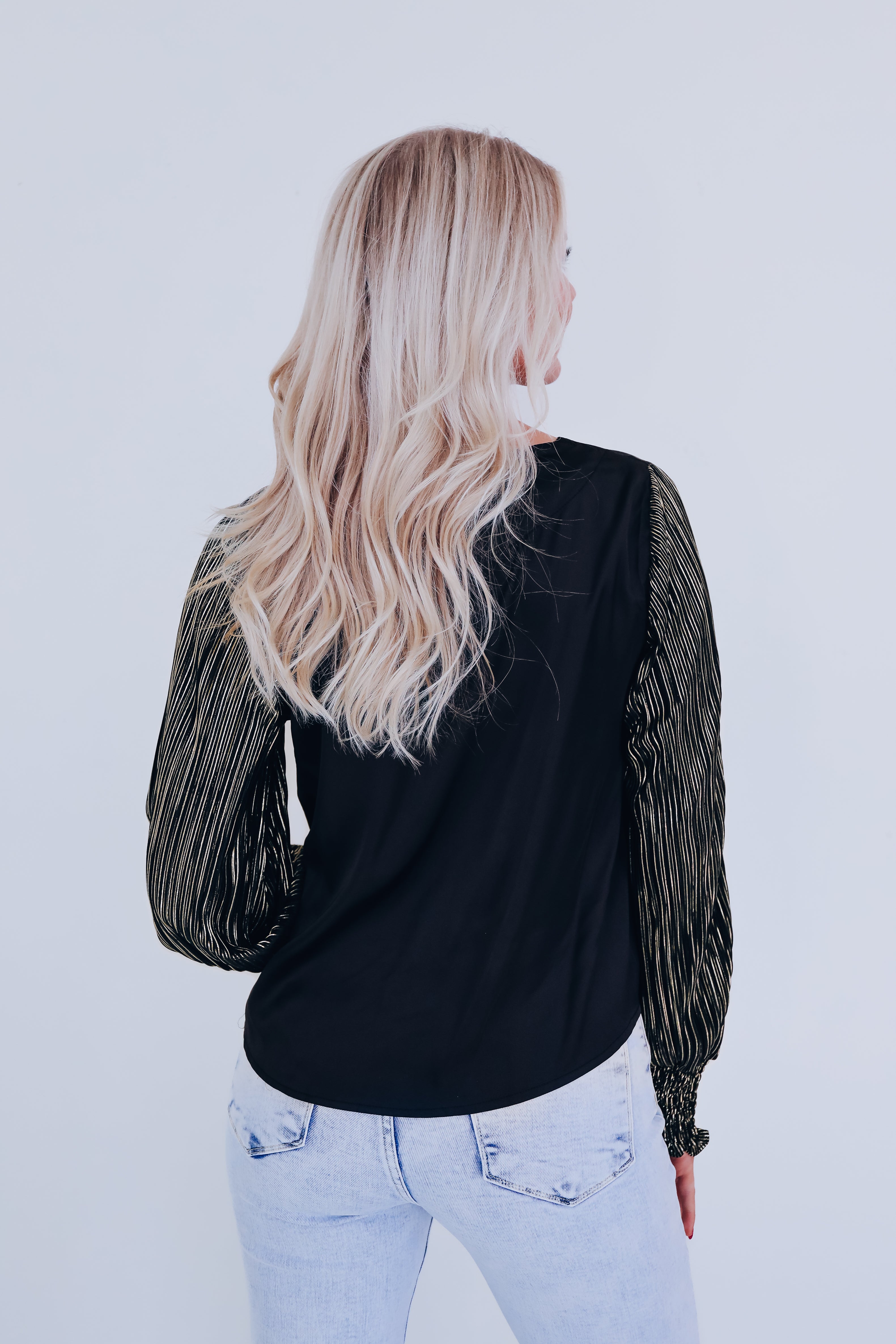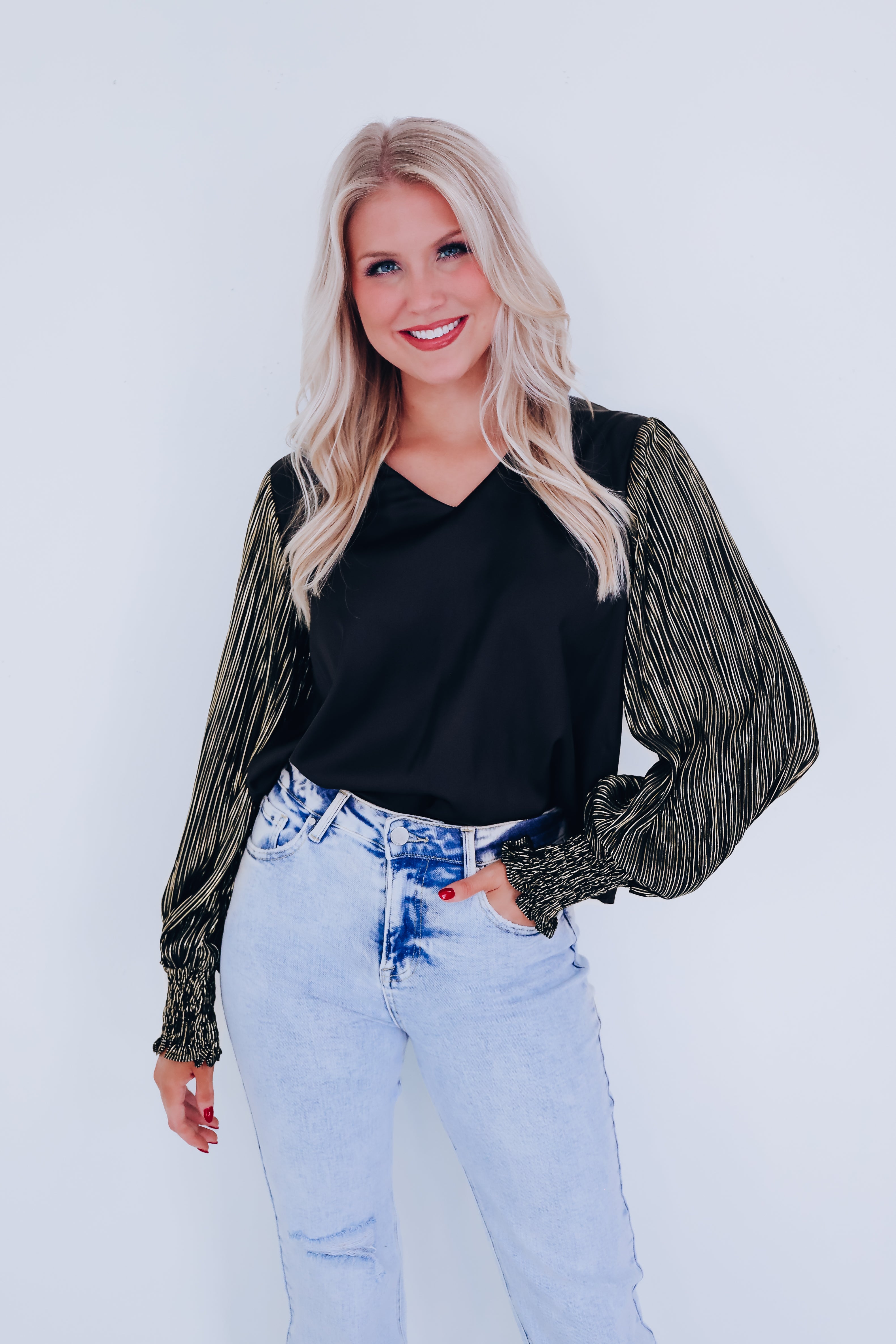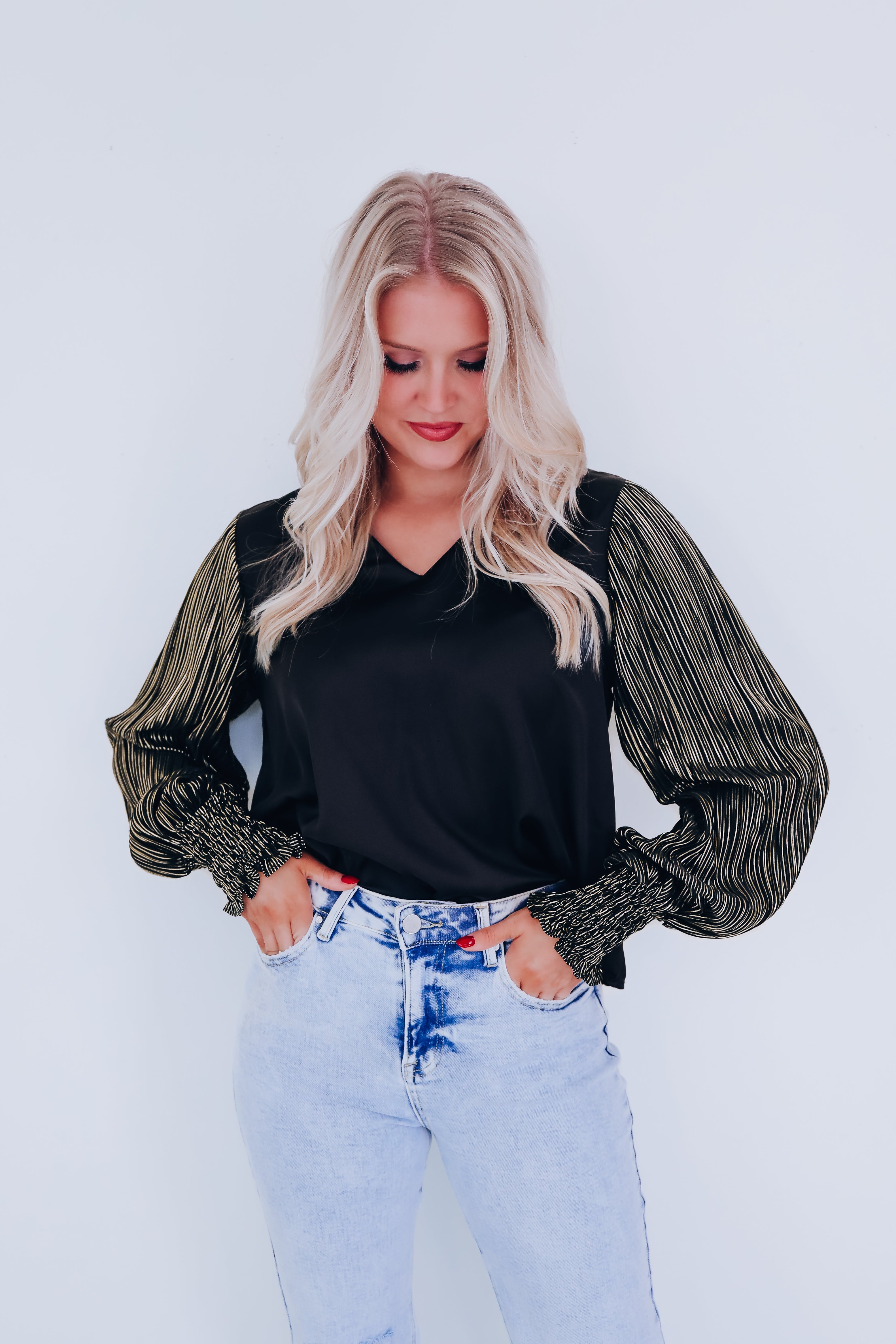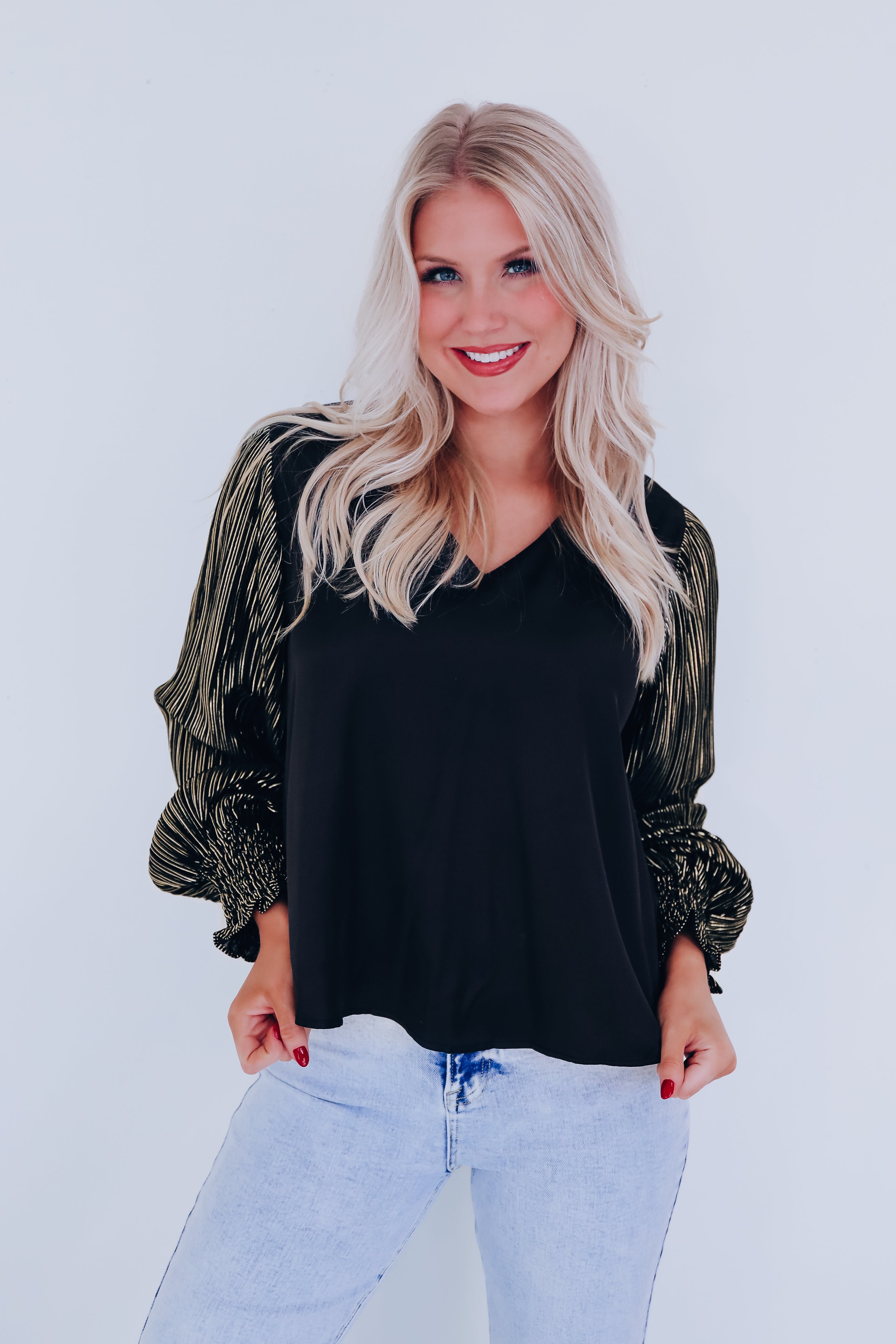 - Our new Touch Of Chic Shimmer Sleeve Top will be an elevated staple to add to your wardrobe! Style this cutie with your fav denim, or pair with slacks/skirt for a trendy 9-5.
