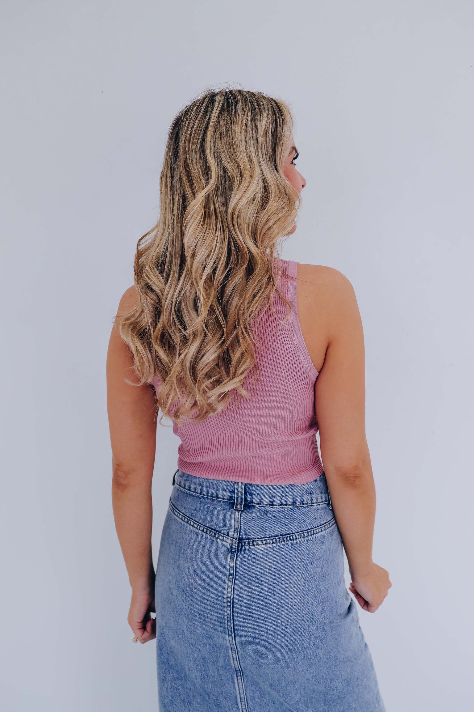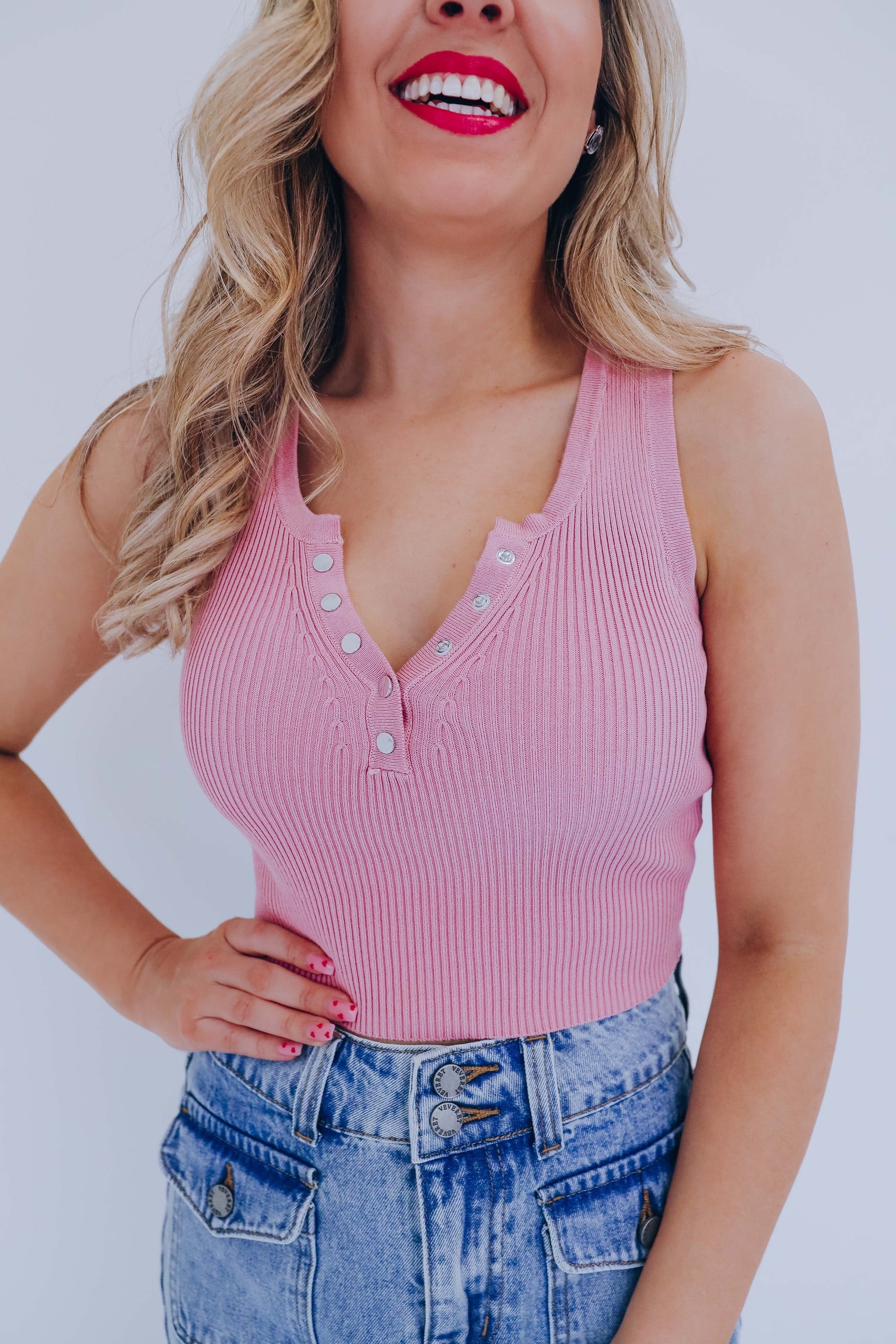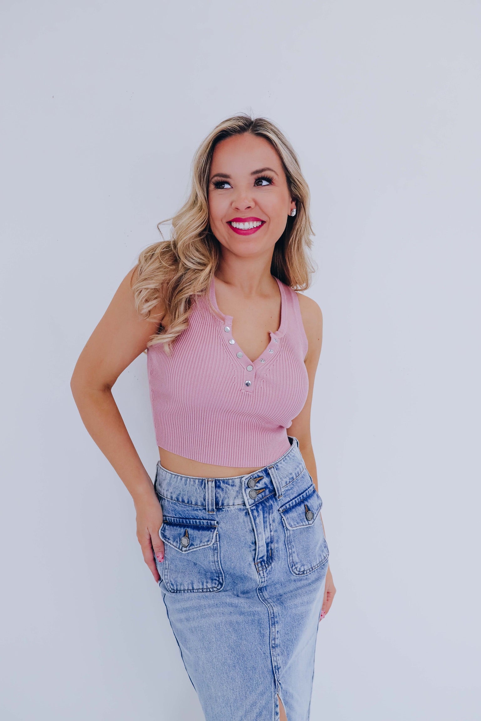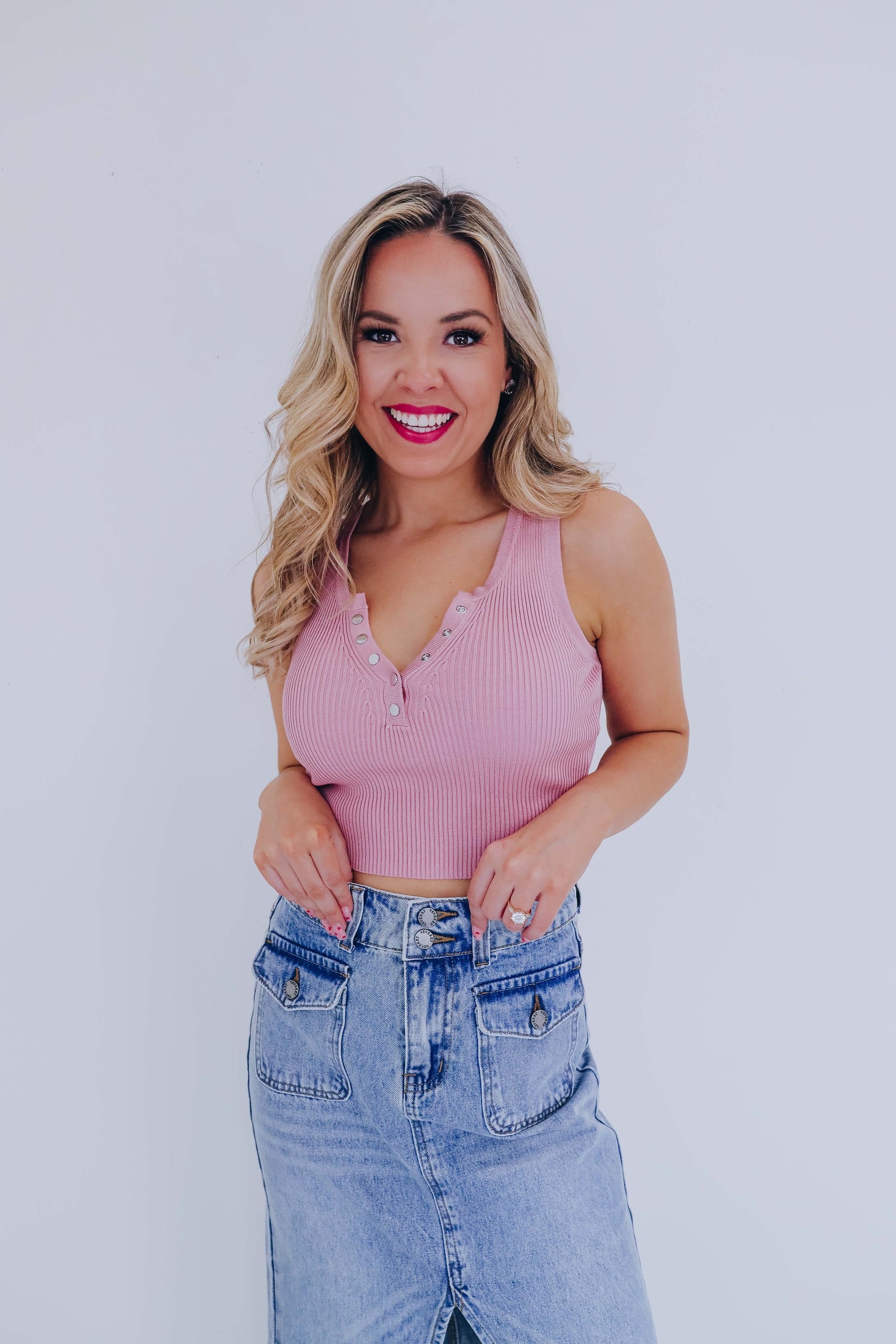Trendy Button Front Cropped Tank - Dusty Rose
