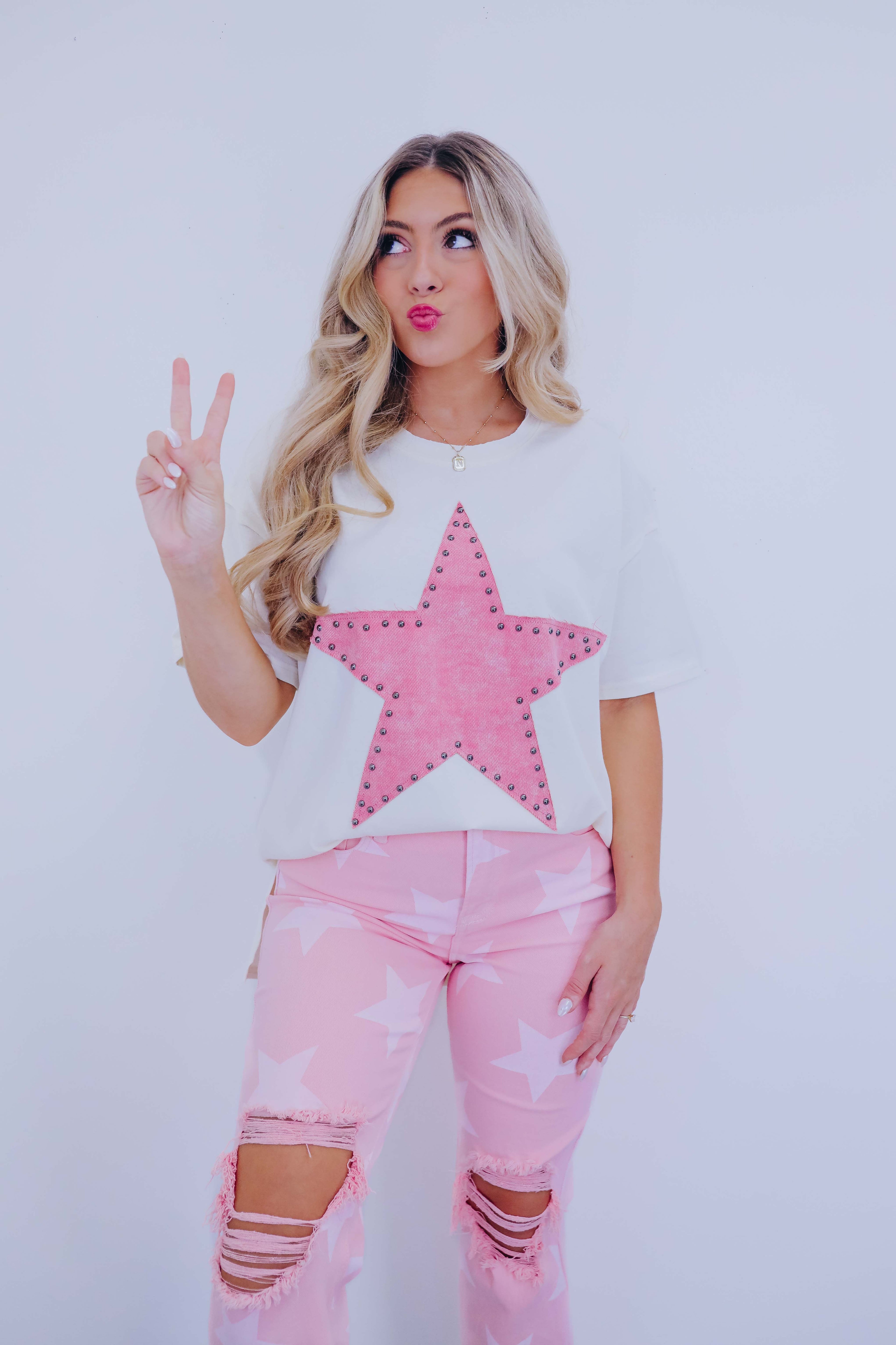 Twill Star Stud Patch Oversized Top - 3 Colors