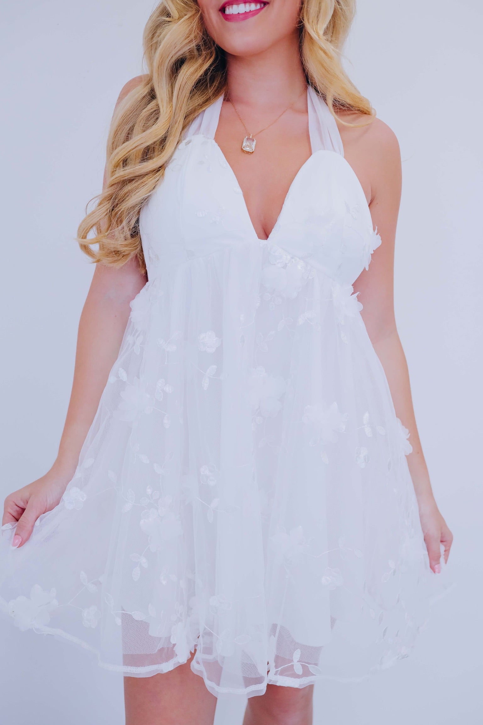 Erica Exquisite Chiffon Halter Mini Dress
