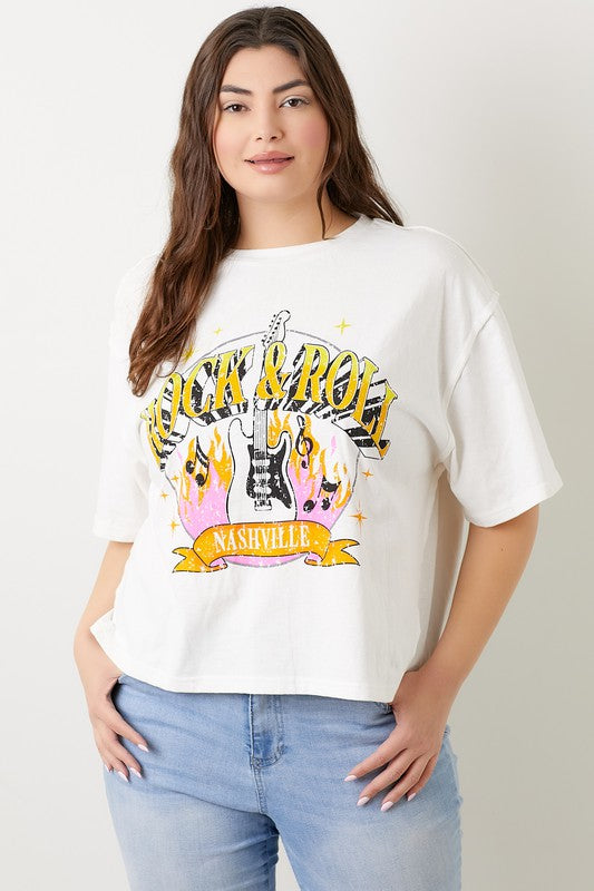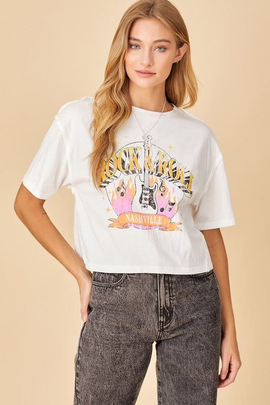 Fire "Rock & Roll" Cropped Graphic Tee - Ivory