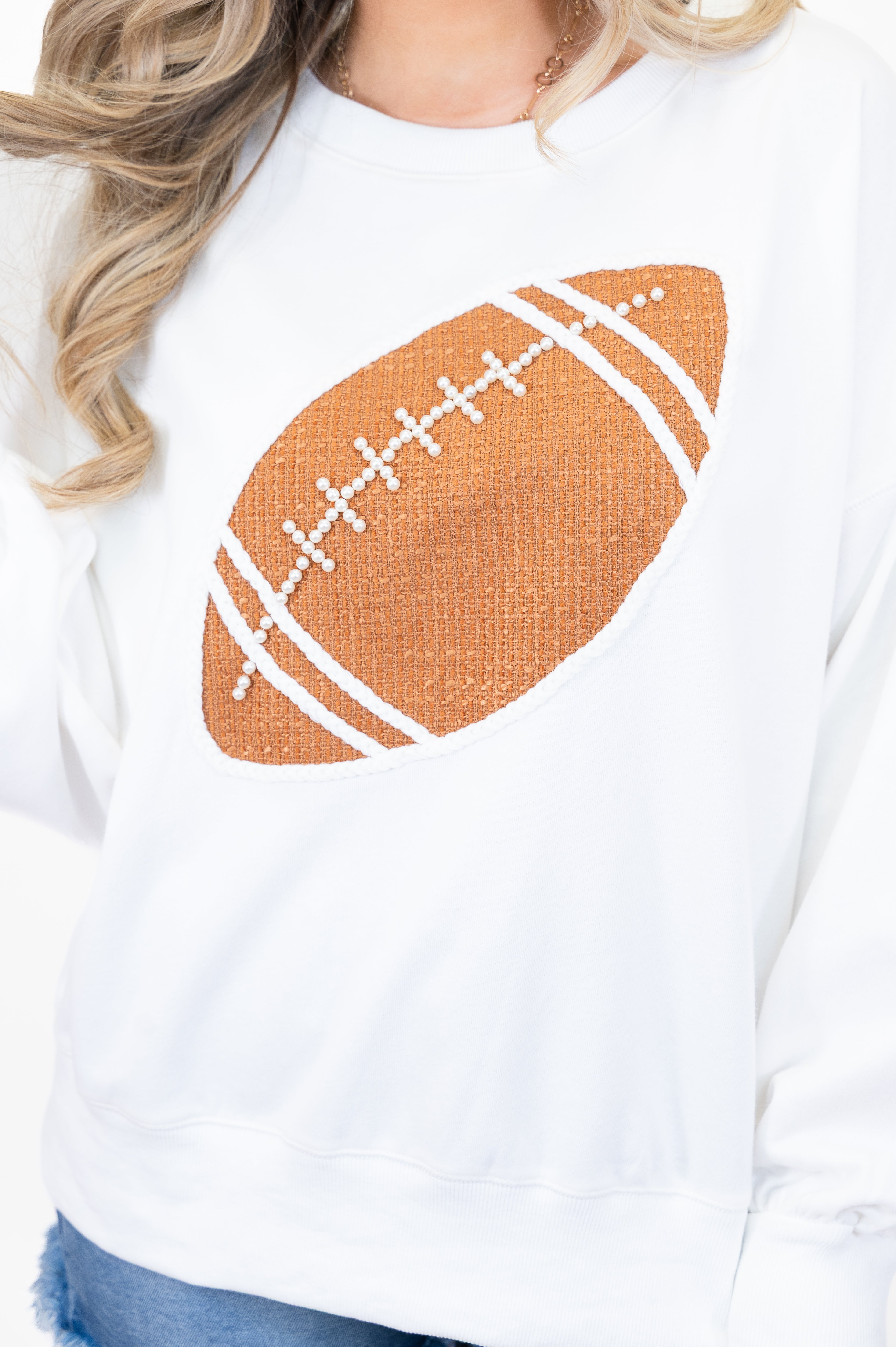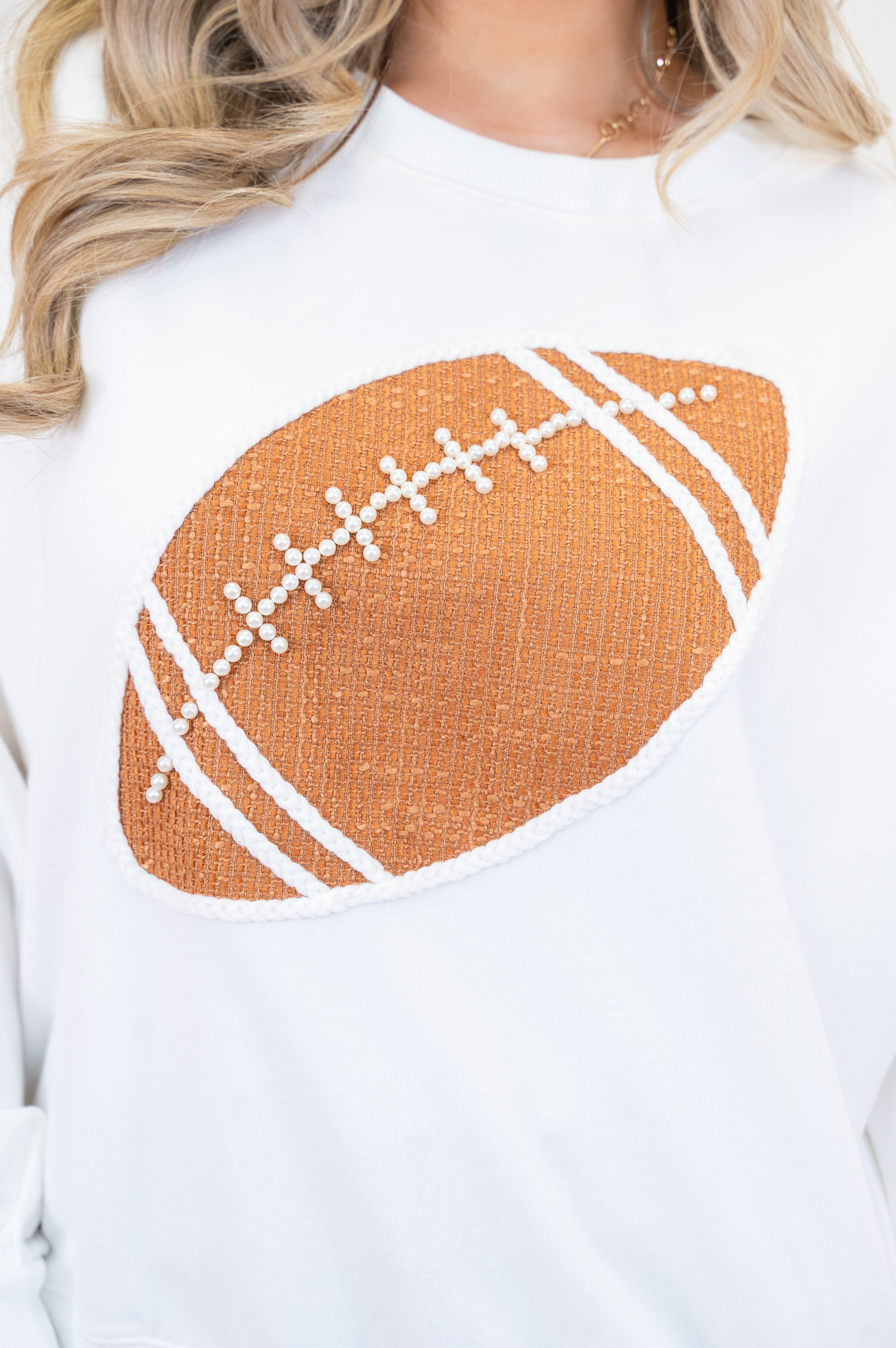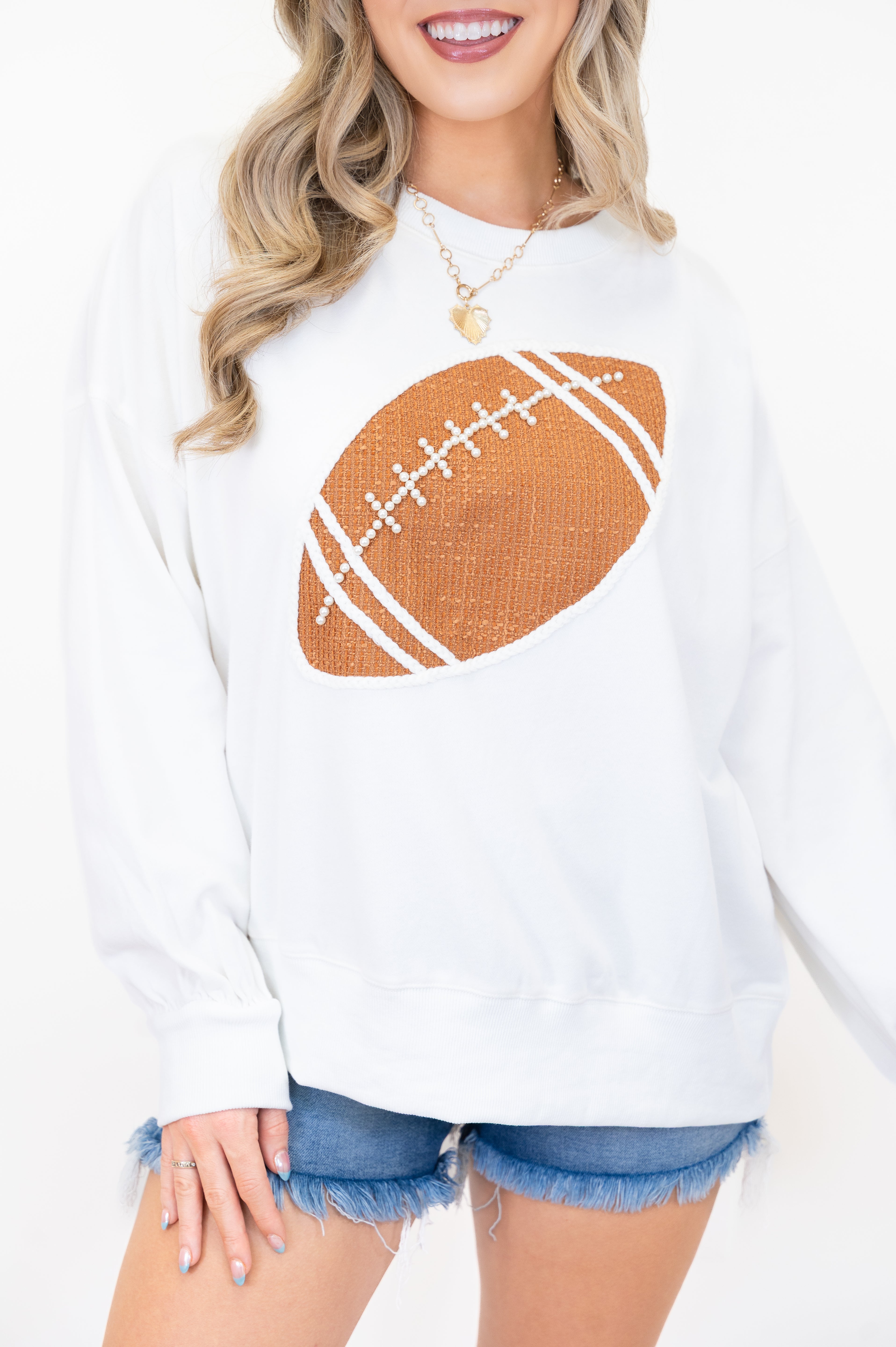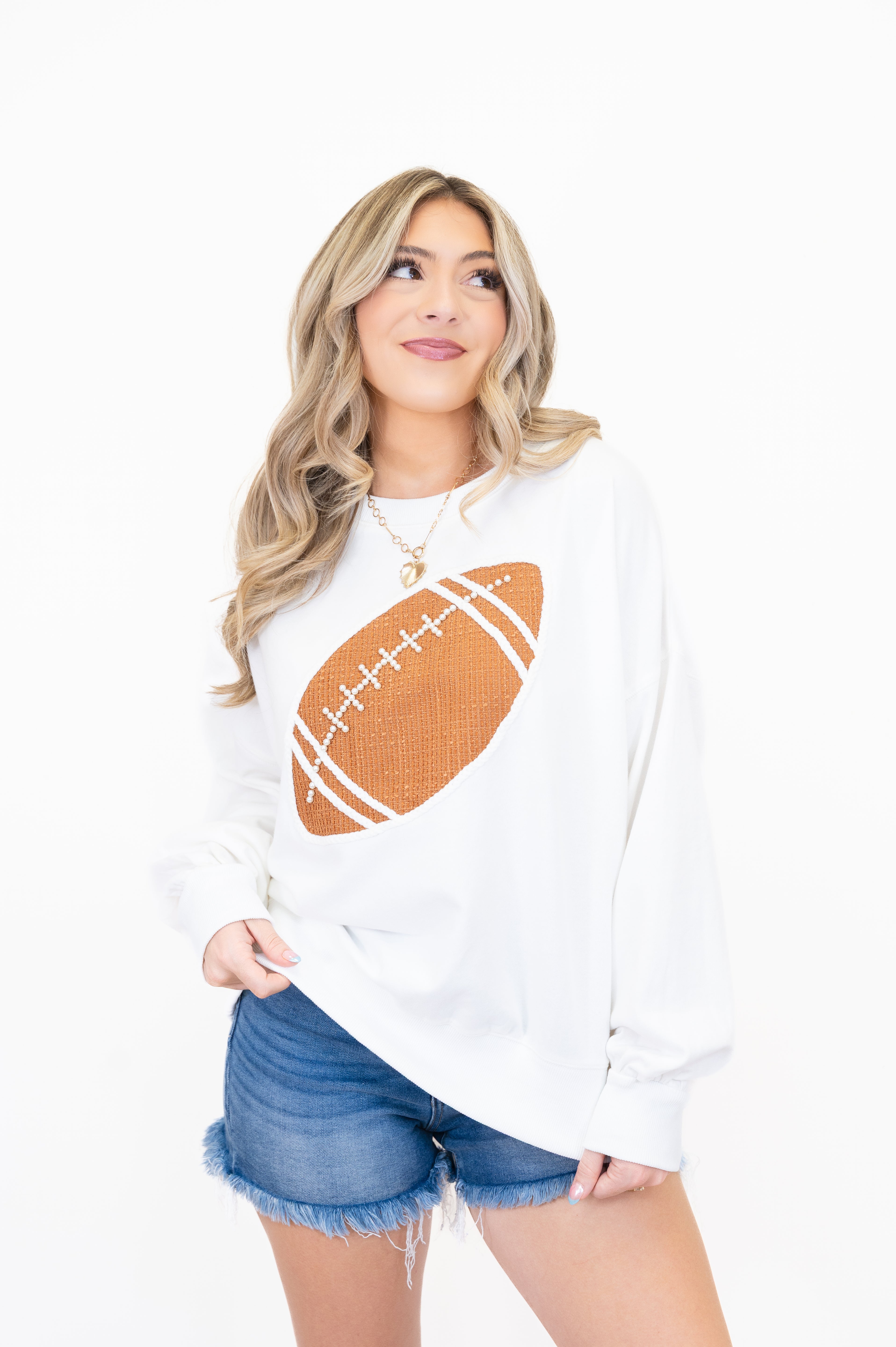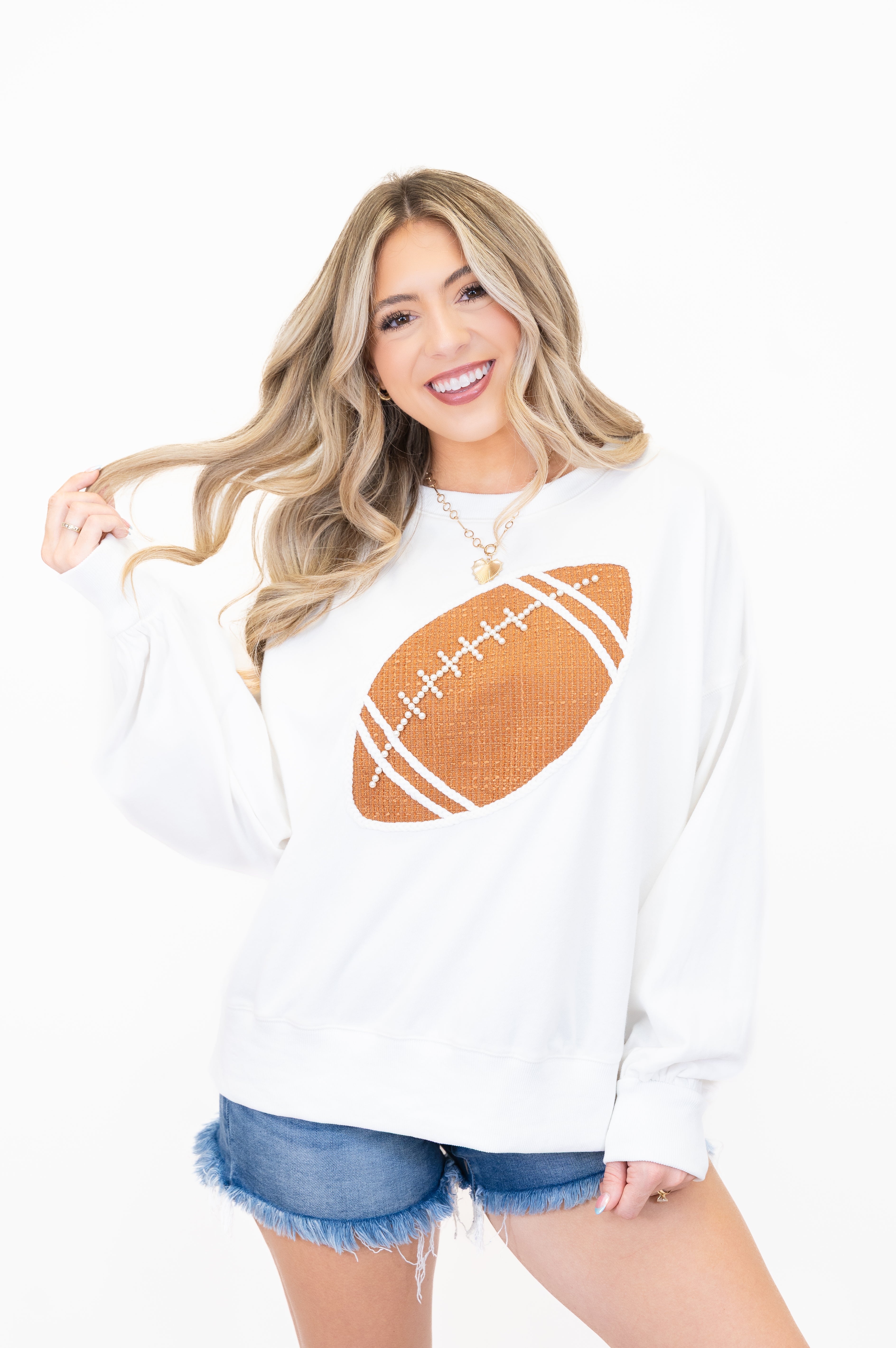 • Who says game day can't be glam? Our Game Day Glam Football Patch Sweatshirt is part rugged and part chic. Style this cozy top with your fav denim or leggings and sneakers for an effortlessly cute fit.