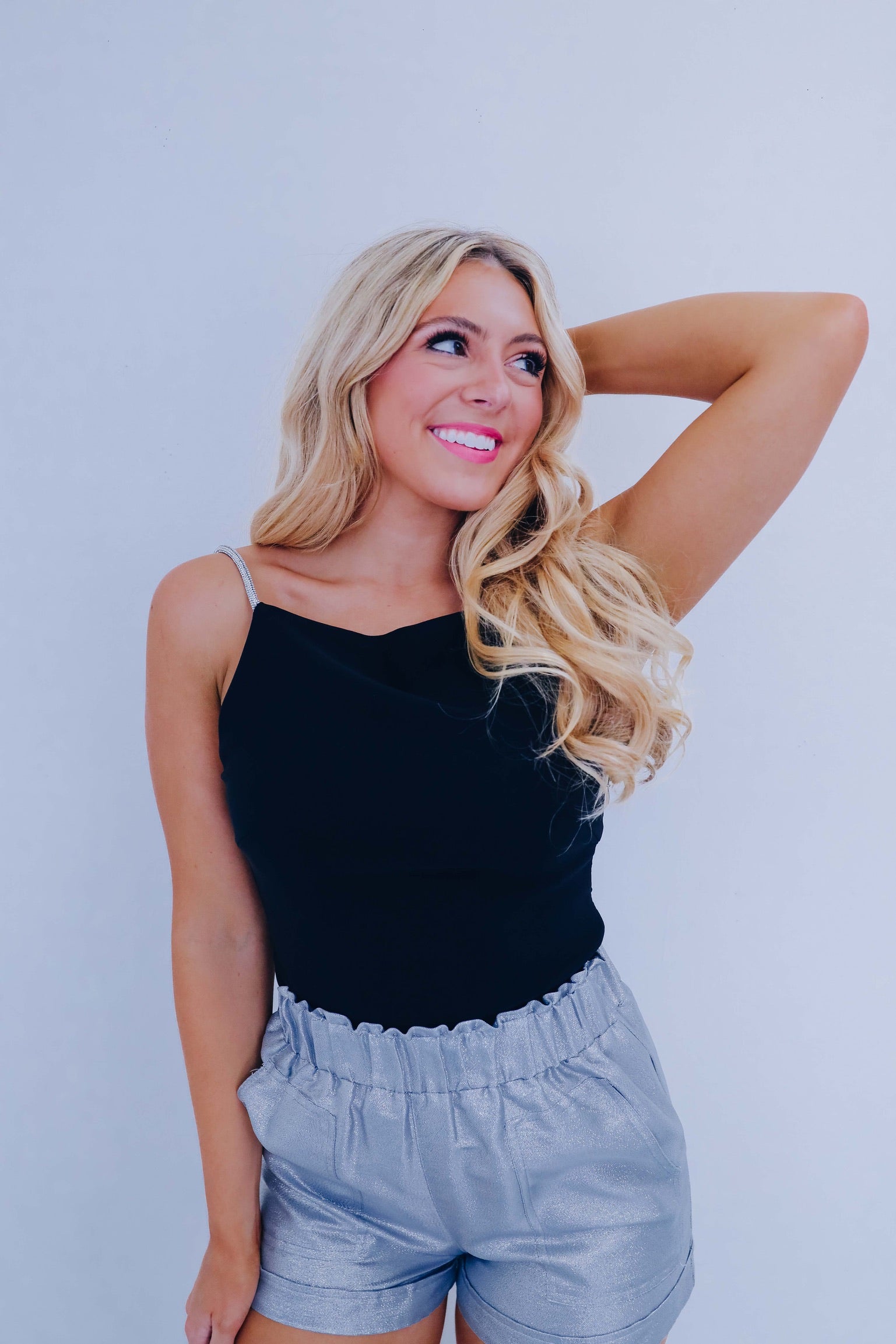 - Looking for the perfect date night outfit? Look no further than our Sheena Shimmering Strap Crop Top! This adorable top pairs perfectly with dress shorts, mini skirts, or your fav denim and booties for a chic trendy date night fit.