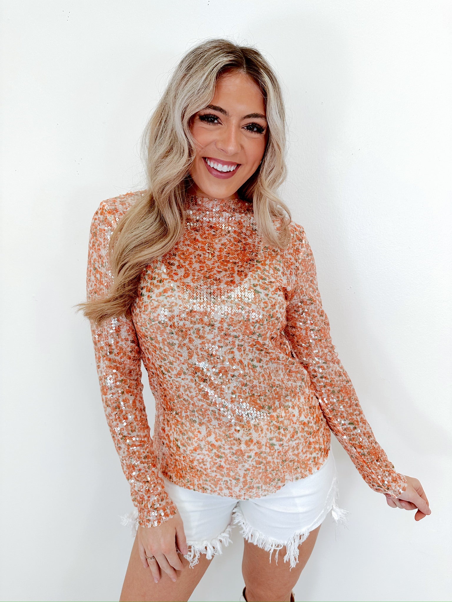 - Dazzle and shine in our Floral Delight Sequin Mesh Top at your next special event! This mesh top is so trendy anad will pair perfectly with slacks, skirts, or even your fav denim.