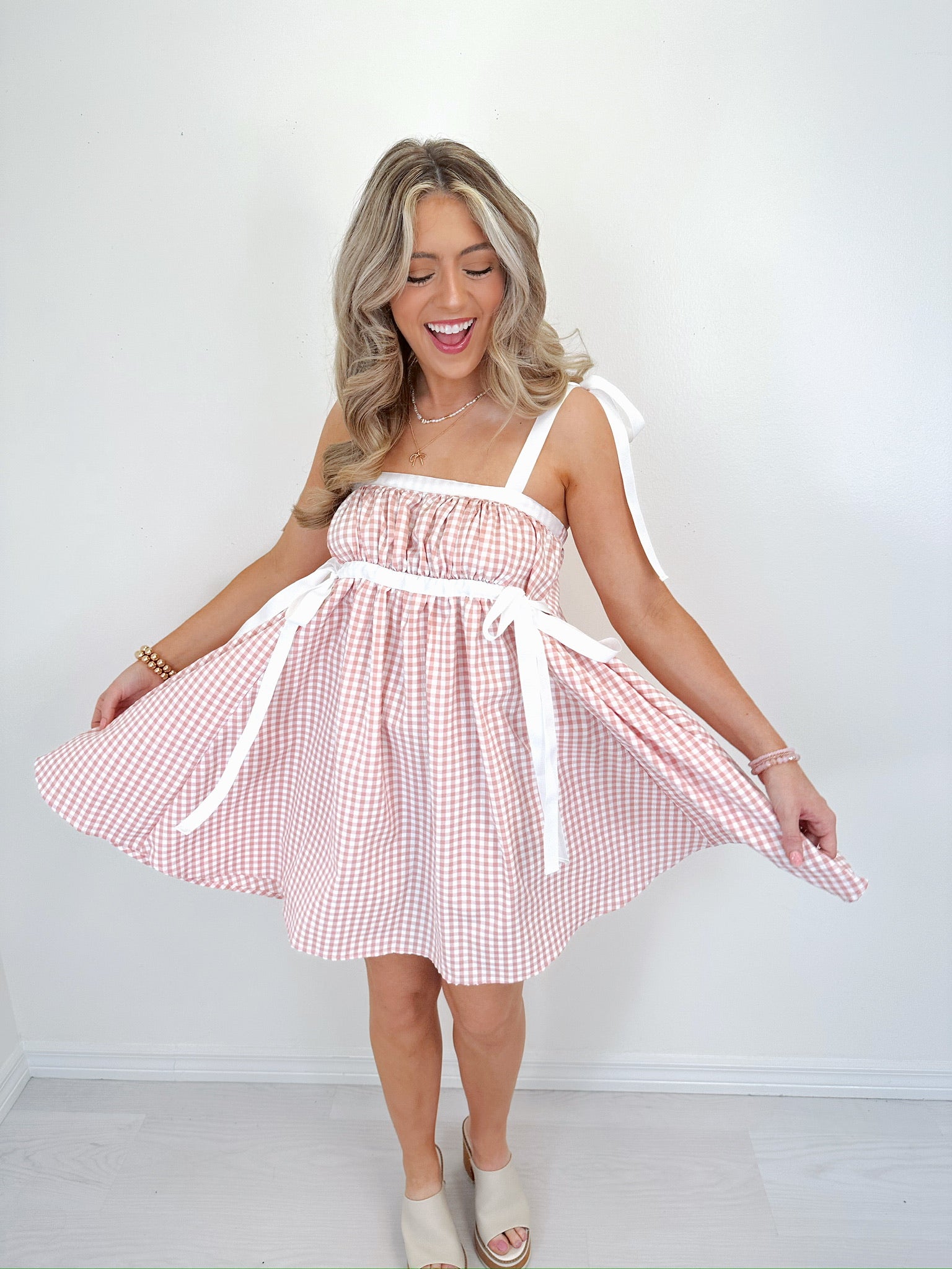 - Sweet as the fresh spring air, our Collette Cutie Gingham Babydoll Dress is serving all the girly charm. With a trendy gingham print, soft babydoll silhouette, and the cutest little bow details, this dress is made for picnic dates, farmers markets, and flirty brunch date. Pair it with white sneakers or strappy sandals for an adorable OOTD.